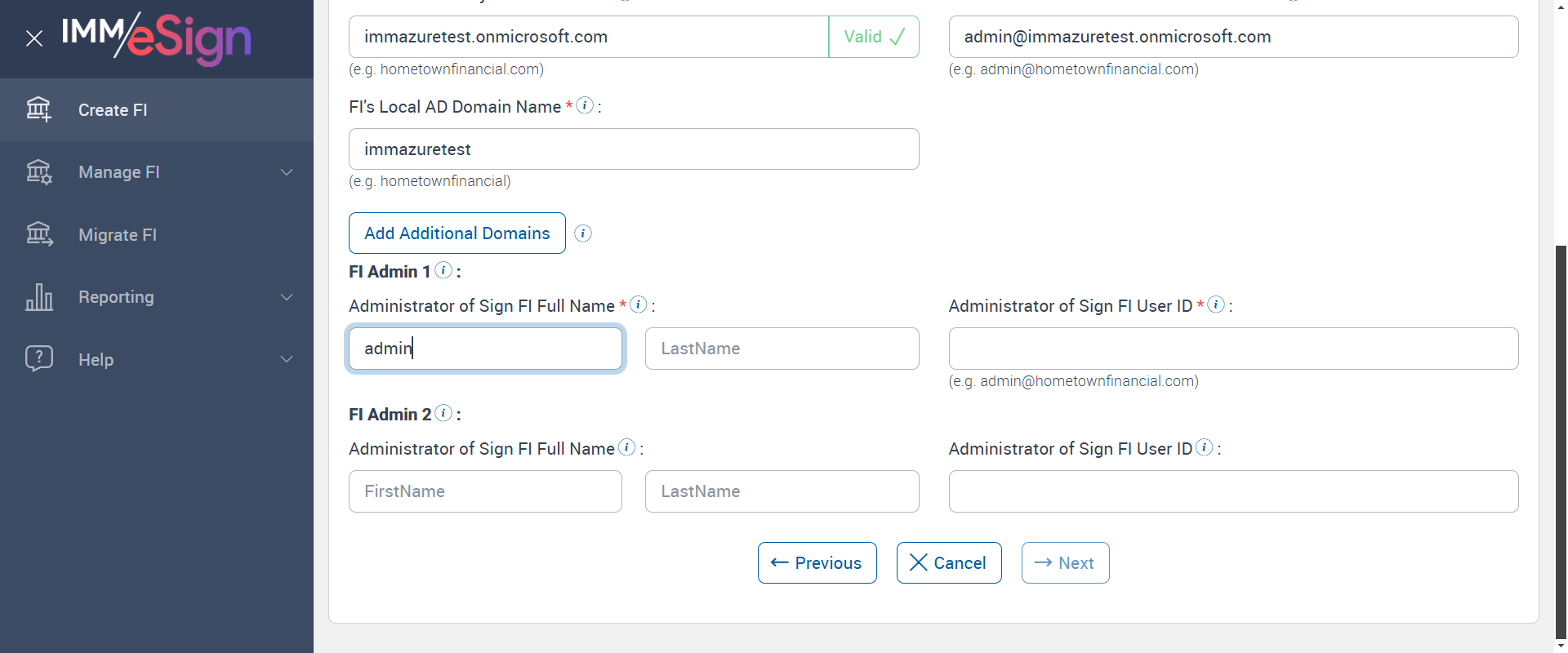 verifyMultiDomainTMCreateFIAzureDetailsandEsignUsersLogin