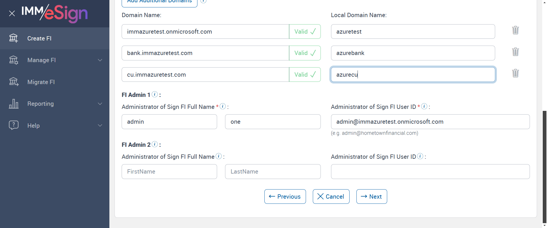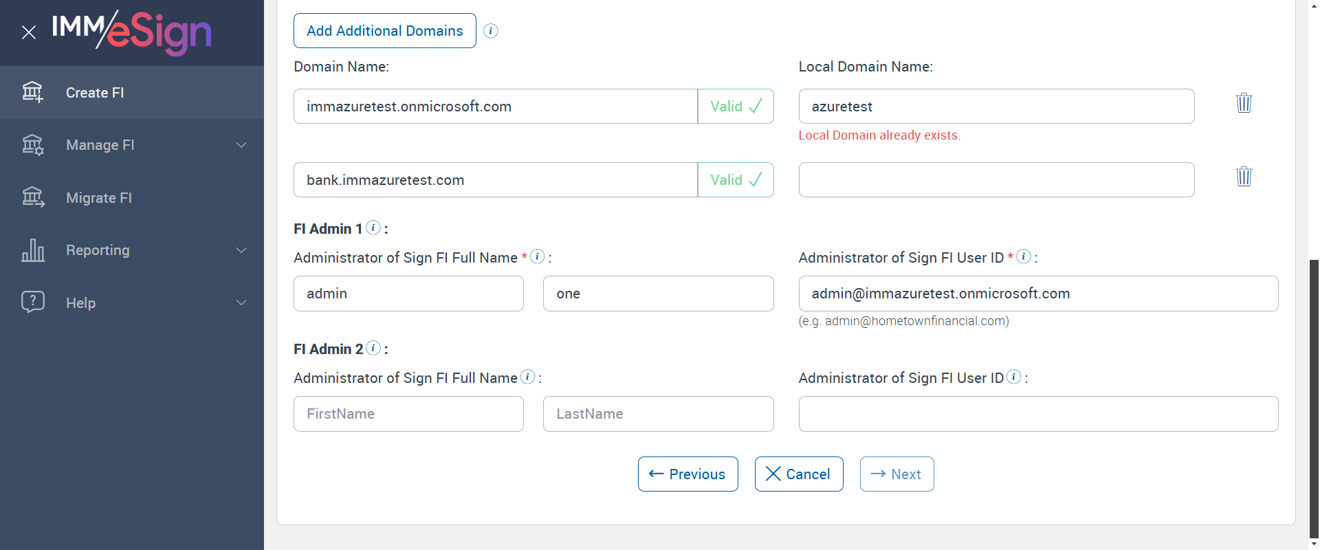 ({Tenant_URL=https://esignnonprod.immesign.com/qa/tenantmanager/, EmailID=, WorkflowSummary=, Login_User_ID=qauser2@immazuretest.onmicrosoft.com;qauser2@bank.immazuretest.com;qauser2@cu.immazuretest.com;, Address=, FiStatus=Completed, FiAdmin_LastName=one;, Add_Dictionary=, GRP_PermissionRadio=, Effect_Summary=, Name=, GRP_PermissionChkBox=, NewUser_ID=KPUser4@immtestcu.onmicrosoft.com;iMM@2025!, LocalDomain=immazuretest, PartiesToView=, NewName=, User_ID=, Wkf_Permission=, Reset_Password=, NewDescription=, AZDomain=immazuretest.onmicrosoft.com, Workflow=, City=, Delete_Dictionary=, AttachmentTypeOption=, NewEmailID=, State=, Login_Password=iMM@2025!;, eSignClient=, ClientID=3AAABLblqZhD30DKWBPu7imEU8SeeWxOu52TQydcjmeTa5VeOcDVkw9gxFFvP8ypLwkNjNPwurxhfsiDhYzrWTX6zRG79GNWx, Domain=azuretest;azurebank;azurecu;, UserType=, NewGroup=, Tenant_User=, FiAdmin_FirstName=admin;, Group=Users;Accounting Group;, Dictionary=TeSign;XPLN;MSP, FI_Name=Autotestfi, Description=Create new FI, While create FI verify Azure details tab UI for multi domain and add multiple Additional domain. After that verify user can login with different additional domains and check user will add in correct group also check correct domain name display., AdditionalDomainName=immazuretest.onmicrosoft.com;bank.immazuretest.com;cu.immazuretest.com;, SearchUser=, Filepath=src/main/resources/testdata/files/documentRTS/BasicRTSDocs/005BA1.pdf;src/main/resources/testdata/files/documentRTS/BasicRTSDocs/513BA.pdf, TestID=verifyMultiDomainTMCreateFIAzureDetailsandEsignUsersLogin, FiAdmin_UserID=admin@immazuretest.onmicrosoft.com;, Dictionary_Code=, IndexSource=, Access_Password=, UserURL2=, Inbox_Permission=, Confirm_Reset_Password=, AdditionalLocalDomainName=azuretest;azurebank;azurecu;, Notes=, Inbox=, GlobalAdmin=admin@immazuretest.onmicrosoft.com, Path=src/main/resources/testdata/files/documentRTS/BasicRTSDocs/BasicRTSDocTemplates.zip;, Copy_User_ID=, Tenant_Password=, Enter_eSignClient=, ZipCode=, FI_ID=Autotestfi, Confirm_Password=, CasesUser=, Tab=, UserURL=, Copy_Tab=})