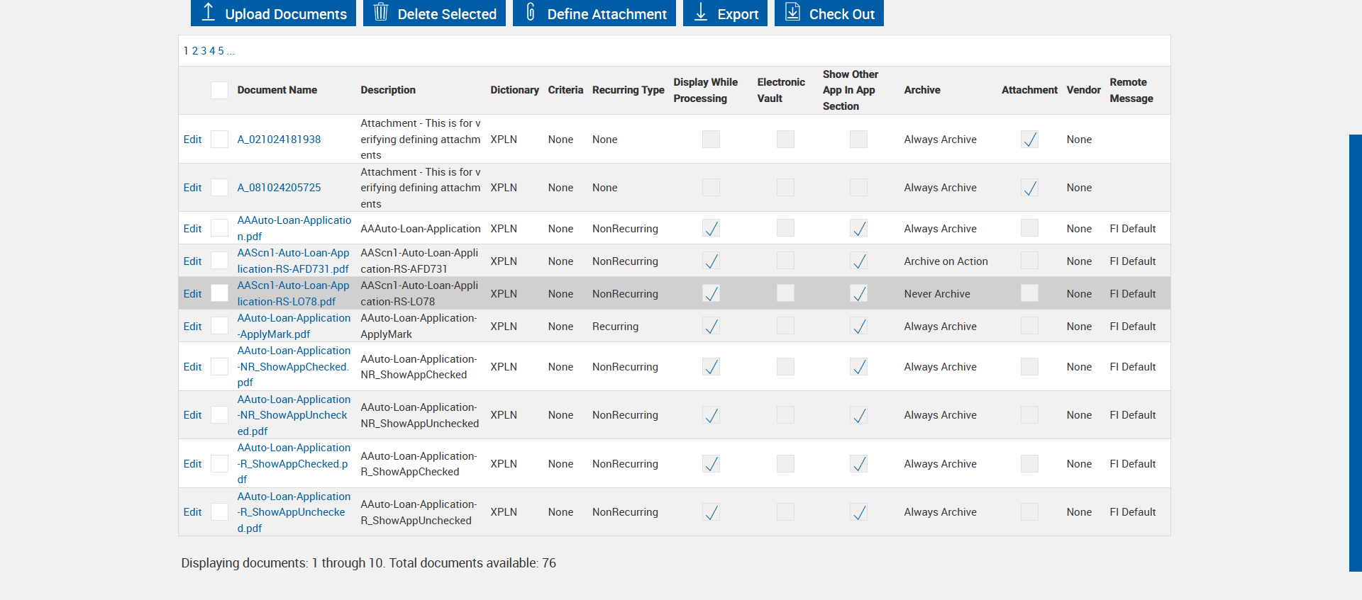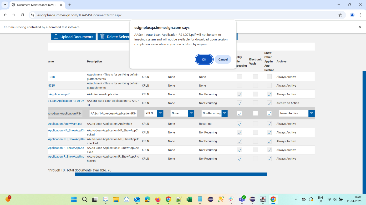 | 04:13:03 pm | Warning Message for Never Archive is verified on Document Maintenance XML page | |