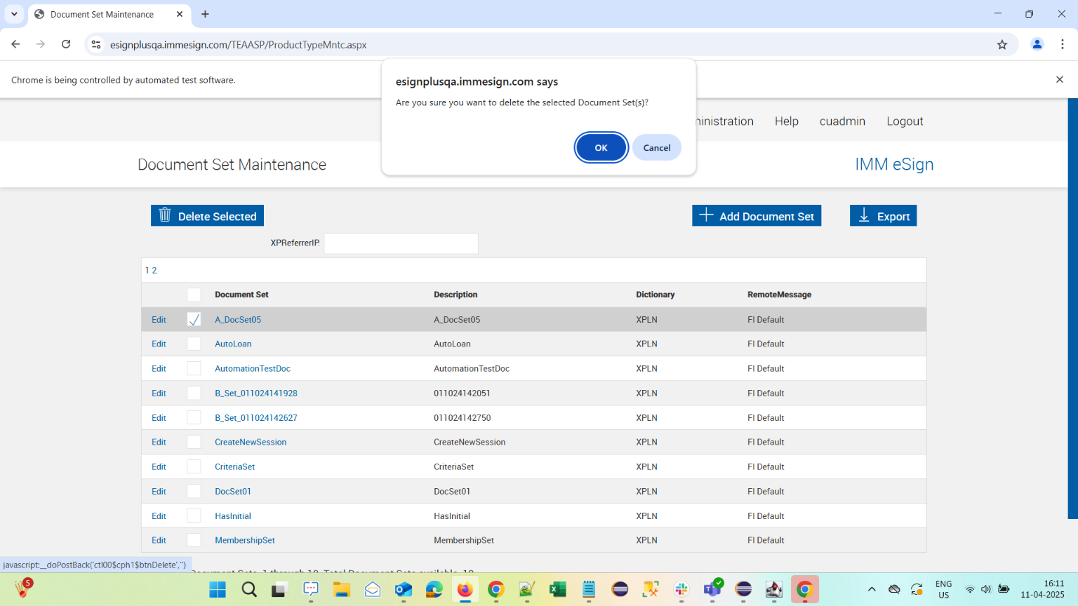 | 04:11:48 pm | Warning Message for Archive on Action is verified on Document Maintenance XML page | |