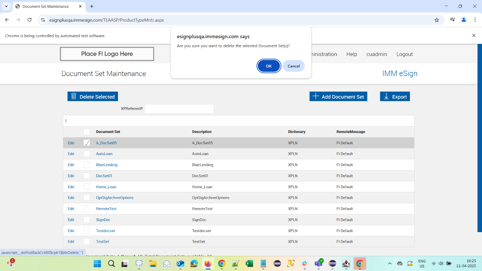 | 11-04-2025 04:05:11 pm | com.imm.testscripts.ConfiguringFI.ConfiguringFI#VerifyArchiveOptionsforDocumentMaintenanceXML#110425160511 | pass |