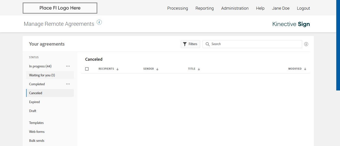 Manage Remote Agreement page displayed successfully and Canceled status is displayed