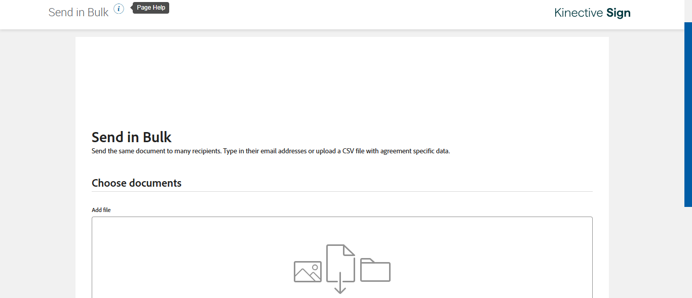 Actual(Passed): Successfully verified 'Send in Bulk page' Tooltip Text Send the same document to multiple recipients, allowing each recipient to sign their own copy individually. This eliminates the need for manually sending the same agreement to each person.[ScreenShot] Expected: Expected tooltip header