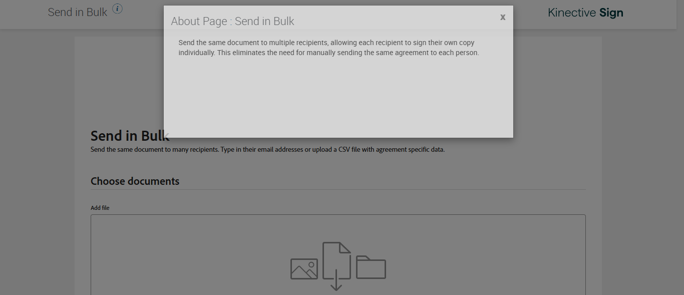 | 11:48:26 am | Expected: Expected Tooltip Send the same document to multiple recipients, allowing each recipient to sign their own copy individually. This eliminates the need for manually sending the same agreement to each person. Actual(Passed): Successfully verified 'Send in Bulk page' Tooltip Text Send the same document to multiple recipients, allowing each recipient to sign their own copy individually. This eliminates the need for manually sending the same agreement to each person. [ScreenShot] |