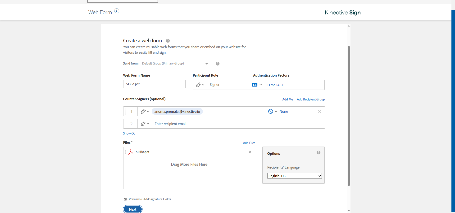 ({Group=, FI_Name=PlusOEM, Description=verifyCreatingWebForms- Role- Signer, Email=anoma.premalal@kinective.io, Platform=, Message=Adhoc Docs, RemoteSettings=, Auth_Factors=ID.me IAL2, KBA_Data=, User_Password=iMM@2025, Admin1_UserId=, RemoteFeature=, Local_AdDomain=, Filepath=src/main/resources/testdata/files/AdobeOEM/513BA.pdf, User_Type=, Name=Anoma User, Admin1_LName=, TestID=verifyCreatingWebForms, FItype=, Required=, AgreementName=Remote Sign Document, Az_GlobAdmin=, TextField=, Document Names=513BA.pdf, Session URL=, ParticipantRole=Signer, Password=, Path=src/main/resources/testdata/files/DocumentExport.Zip, Admin1_FName=, New Column=, User_Name=anoma@immtestcu.onmicrosoft.com, NumOfAttachments=, Checked=, Folderpath=srcmainresourcestestdatafilesAdobeOEM, ClientID=, Key=})
