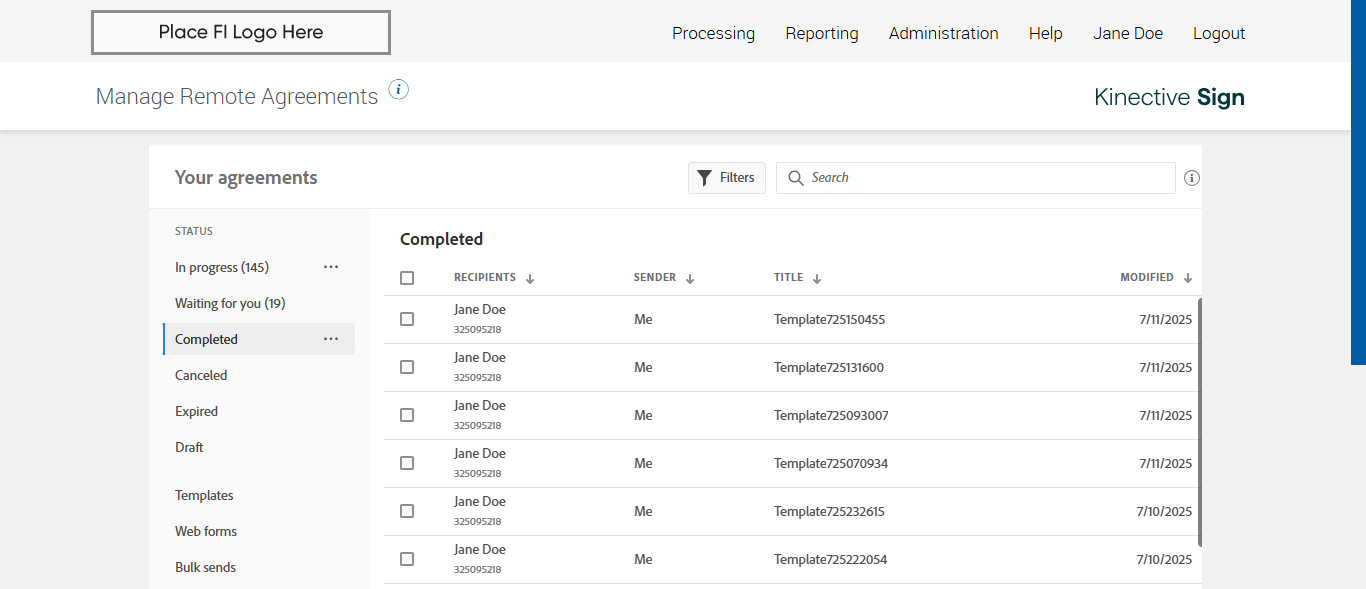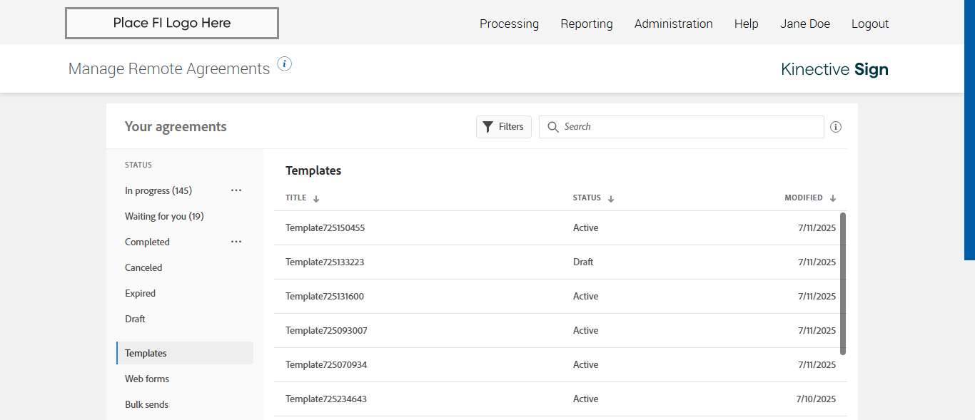 | 03:11:17 pm | Manage Remote Agreement page displayed and 'Templates' status successfully [ScreenShot] | |