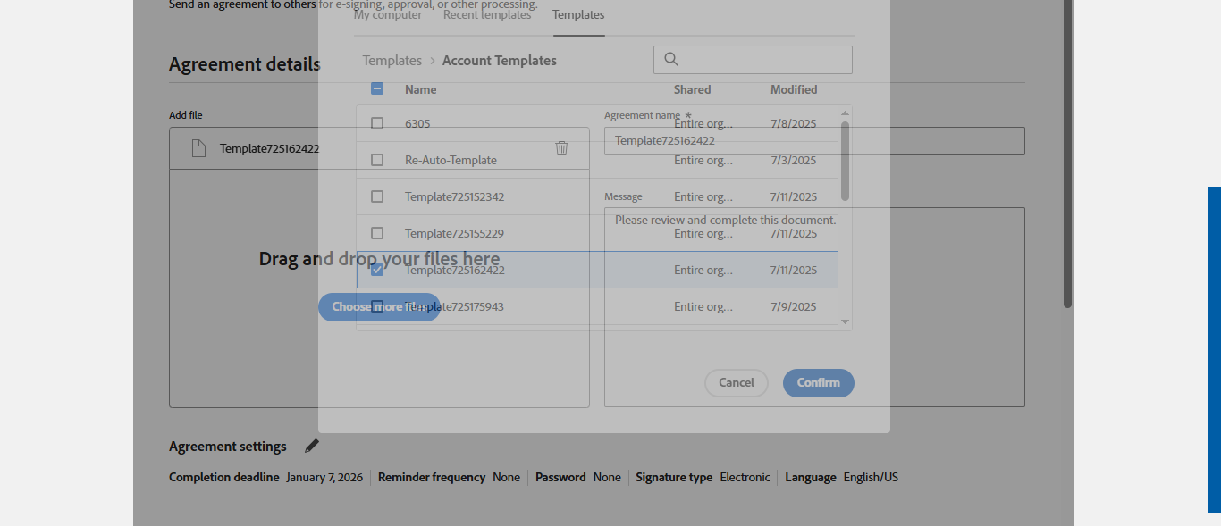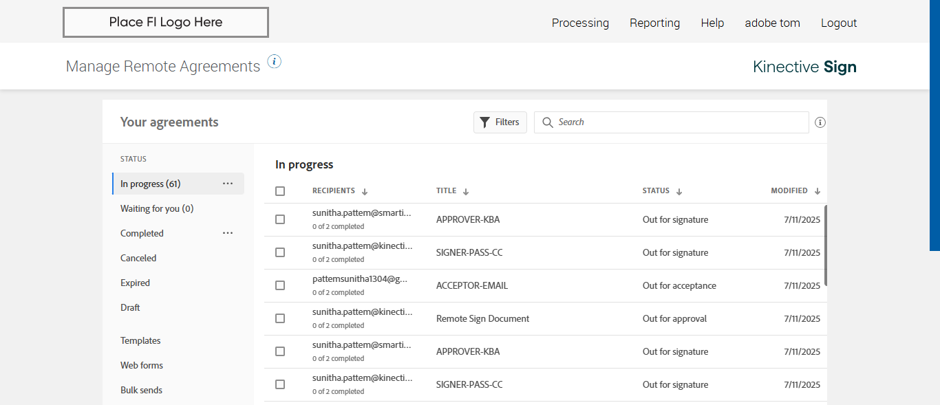 | {templateType=both, Group=, Description=verify Create Template And Send Transaction using Template And Recently Used Template - SignFi, Email=sunitha.pattem@kinective.io,sunitha.pattem@smartims.com,pattemsunitha1304@gmail.com, Platform=, Message=Import CSV , RemoteSettings=, User_Password=iMM@2022, Admin1_UserId=, RemoteFeature=, TM_User_Name=immadmin2@immesignqa.onmicrosoft.com, Local_AdDomain=, Filepath=Account Templates > Re-Auto-Template,Re-Auto-Template,src/main/resources/testdata/files/AdobeOEM/sendInBulk.csv, User_Type=, Name=Sunitha Ktv,Sunitha Smt,Sunitha Gml, Admin1_LName=, TestID=verifyCreateTemplateAndSendTransactionUsingTemplateAndRecentlyUsedTemplate, FItype=, Required=, AgreementName=Remote Sign Document, TextField=, plusfi=, Document Names=6305.pdf, IntegrationType=Fully Integrated, Session URL=, Path=src/main/resources/testdata/files/AdobeOEM/6305.pdf,src/main/resources/testdata/files/AdobeOEM/513BA.pdf, Admin1_FName=, New Column=, User_Name=janedoe@immtestcu.onmicrosoft.com,adobe@immtestcu.onmicrosoft.com, FI_ID=adobeuser, whoCanUseTemplate=any user in my organization, NumOfAttachments=, Checked=, Folderpath=srcmainresourcestestdatafilesAdobeOEM, TMUrl=https://esignnonprod.immesign.com/qa/tenantmanager/, ClientID=, Key=} |