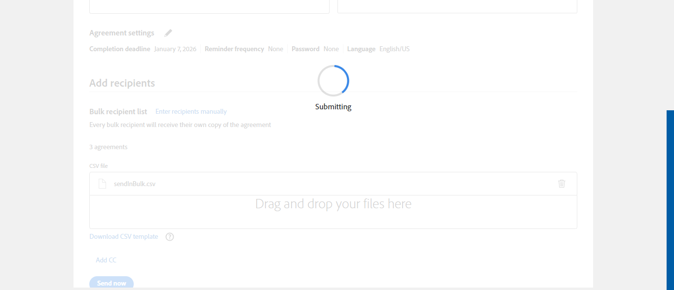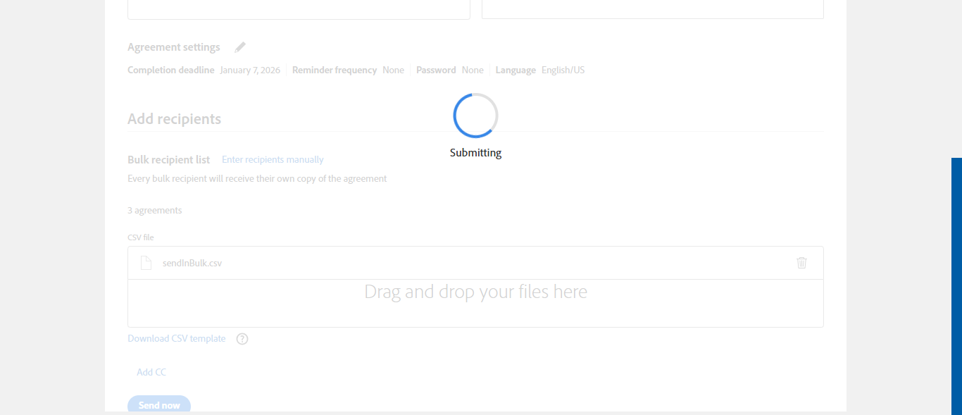 | {templateType=both, Group=, Description=verify Create Template And Send Transaction using Template And Recently Used Template - PlusFi, Email=sunitha.pattem@kinective.io,sunitha.pattem@smartims.com,pattemsunitha1304@gmail.com, Platform=, Message=Import CSV , RemoteSettings=, User_Password=iMM@2022, Admin1_UserId=, RemoteFeature=, TM_User_Name=immadmin2@immesignqa.onmicrosoft.com, Local_AdDomain=, Filepath=Account Templates > Re-Auto-Template,Re-Auto-Template,src/main/resources/testdata/files/AdobeOEM/sendInBulk.csv, User_Type=, Name=Sunitha Ktv,Sunitha Smt,Sunitha Gml, Admin1_LName=, TestID=verifyCreateTemplateAndSendTransactionUsingTemplateAndRecentlyUsedTemplate, FItype=, Required=, AgreementName=Remote Sign Document, TextField=, plusfi=TRUE, Document Names=6305.pdf, IntegrationType=Fully Integrated, Session URL=, Path=src/main/resources/testdata/files/AdobeOEM/6305.pdf,src/main/resources/testdata/files/AdobeOEM/513BA.pdf, Admin1_FName=, New Column=, User_Name=janedoe@immtestcu.onmicrosoft.com,adobe@immtestcu.onmicrosoft.com, FI_ID=plusrmt1, whoCanUseTemplate=any user in my organization, NumOfAttachments=, Checked=, Folderpath=srcmainresourcestestdatafilesAdobeOEM, TMUrl=https://esignnonprod.immesign.com/qa/tenantmanager/, ClientID=, Key=} |
