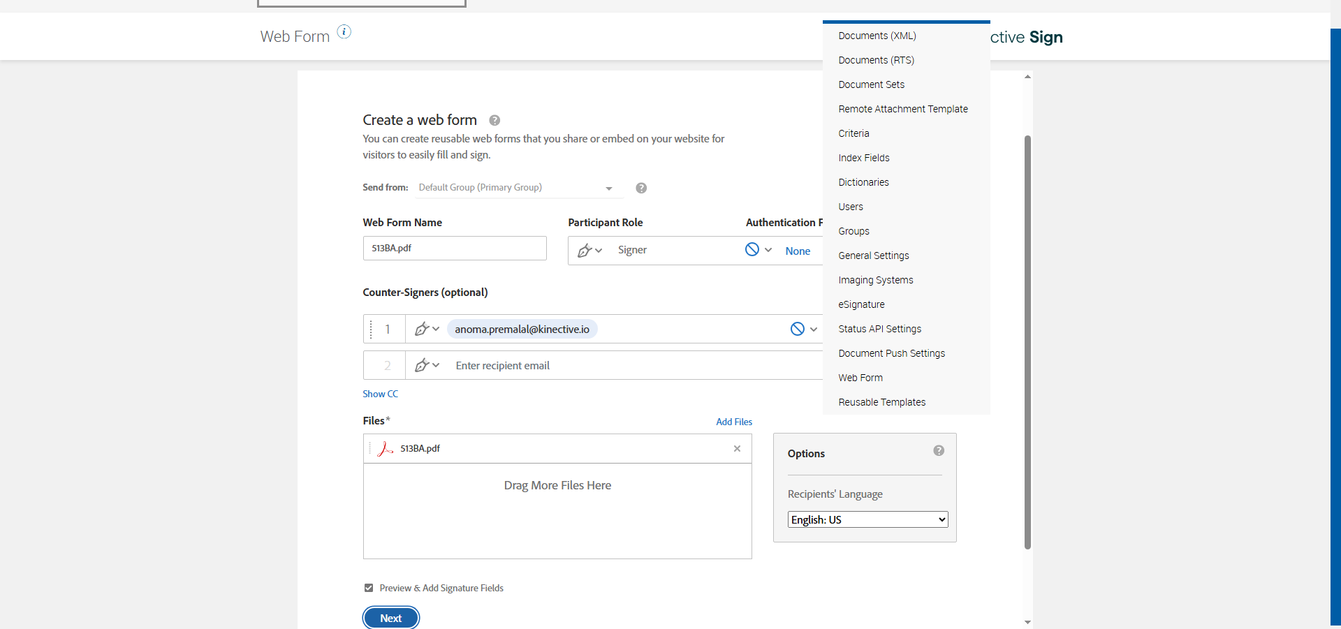 verifyCreatingWebForms({Group=, FI_Name=SignOEM, Description=verifyCreatingWebForms- Sign Only Fi, Email=anoma.premalal@kin...)