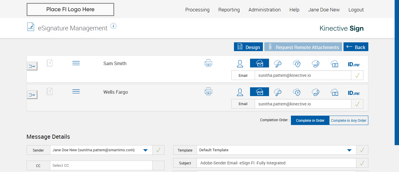 Expected: The session is successfully submitted for Remote Signatures message should be displayed