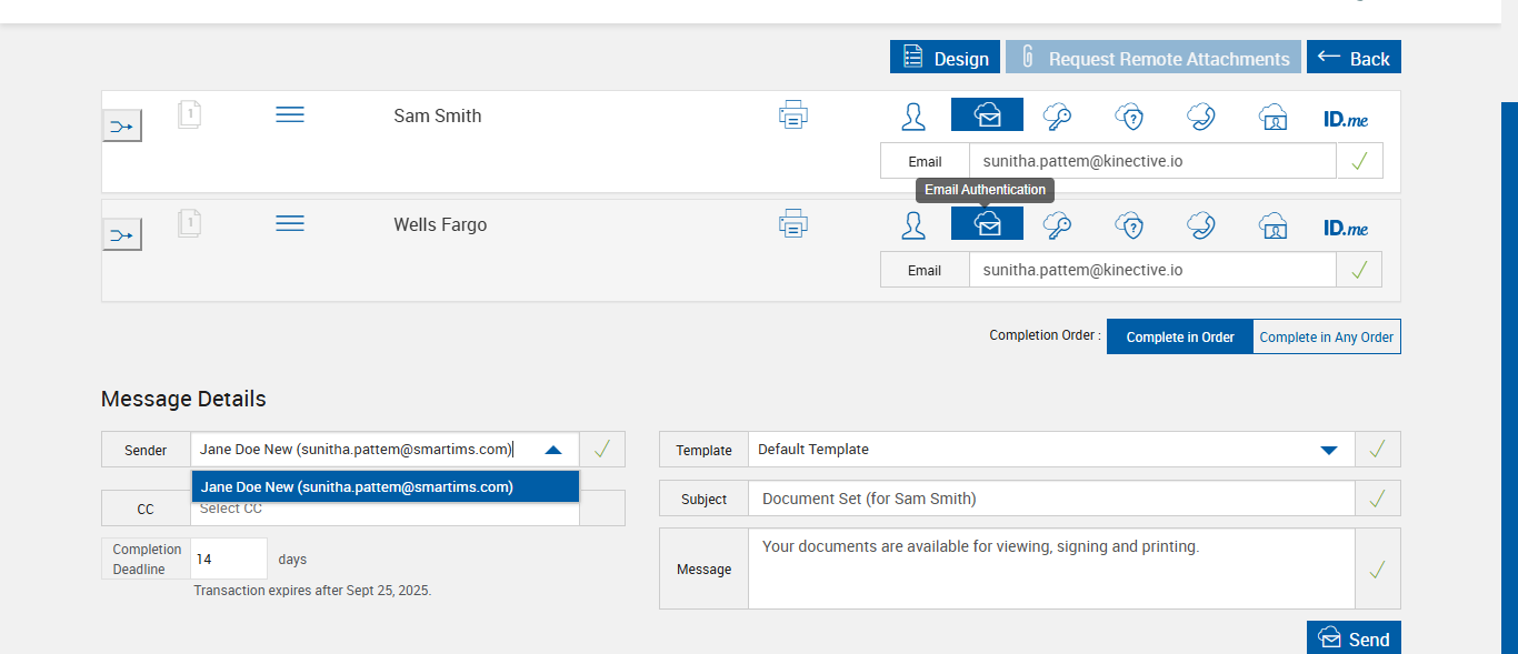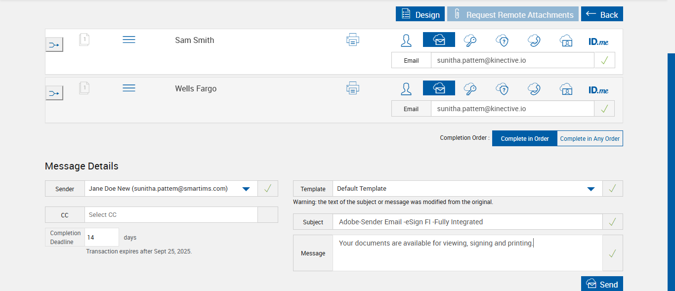 verify Sender Email In eSignature Management Page - eSign FI - Fully Integrated COMMENTS:
