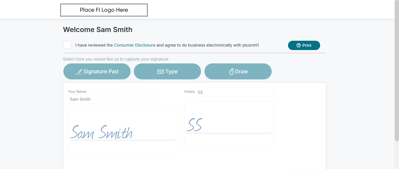 | 09:31:13 am | By creating your electronic signature in the space provided above and clicking the "Accept" button you are consenting to use electronic records and signatures in connection with this transaction, confirming your name and initials displayed above are correct. Your electronic signature will be just as enforceable as signing the same document using a handwritten signature. | |