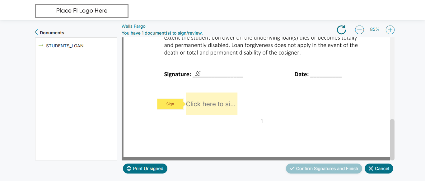 | 09:32:51 am | Clicked 'Sign' button for Wells Fargo | |