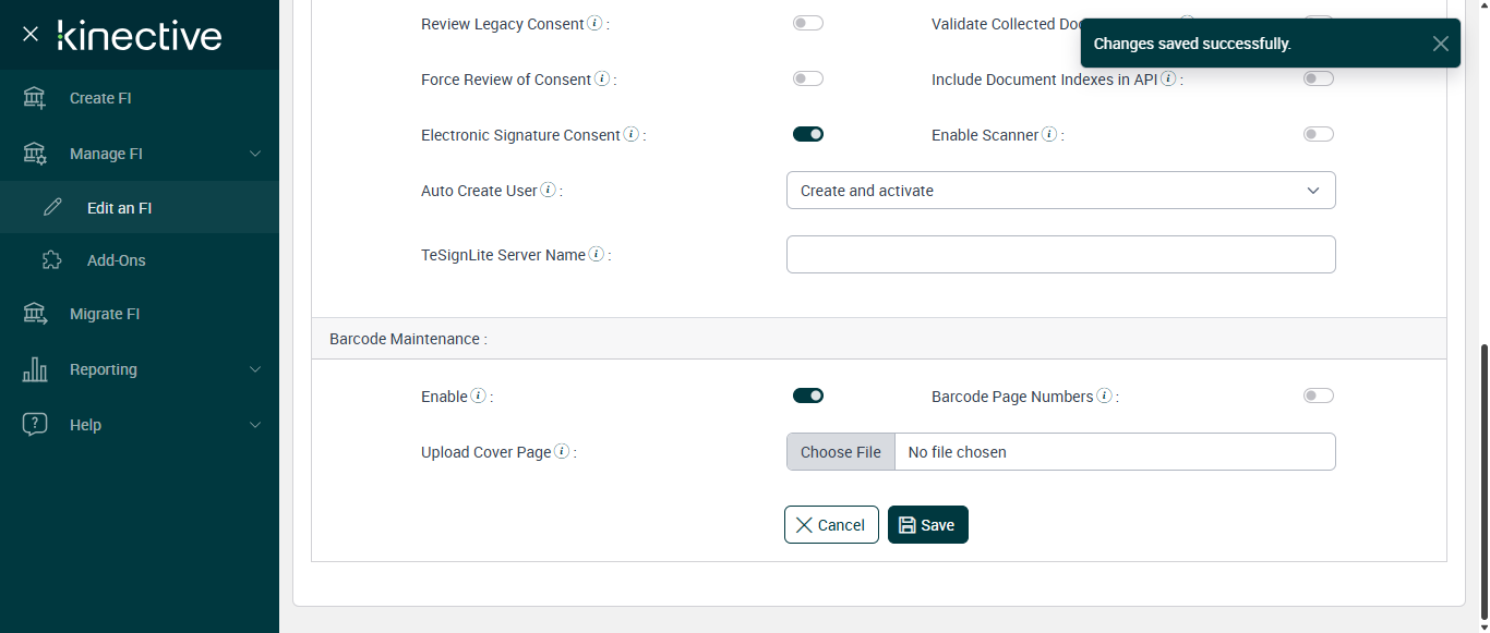 | 09:36:30 am | Successfully navigated to 'Create an FI' page [ScreenShot] | |