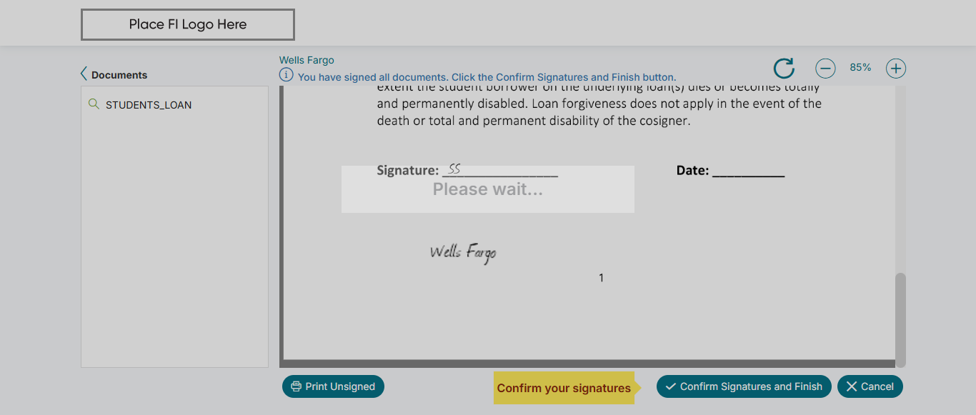 | 09:35:07 am | Clicked 'Confirm signature and finish' button! | |