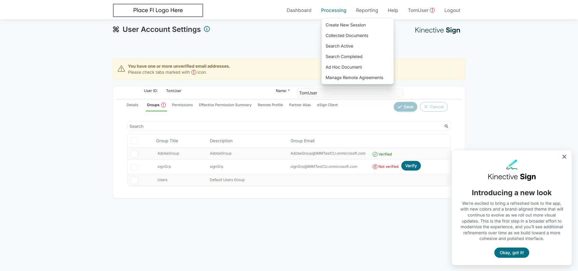 ! --- 11 Dec 22:33:01 485 - Page URL:: https://esignplusqa.immesign.com/teaasp/usermaintenance?mode=pwd --- 11 Dec 22:33:01 486 - 4 - Page Load Wait: (Sync) - com.imm.support.Utils.waitForPageLoad(Utils.java:122) Logout --- 11 Dec 22:33:05 018 - Page URL:: https://esignplusqa.immesign.com/teaasp/usermaintenance?mode=pwd --- 11 Dec 22:33:05 019 - 3 - Page Load Wait: (Sync) - com.imm.support.Utils.waitForPageLoad(Utils.java:122) --- 11 Dec 22:33:05 320 - Element is displayed using Selenide:: [[RemoteWebDriver: chrome on Windows 10 (0e1401b44272079accb48bd3e57d73b8)] -> xpath: //button[@id='btnPasswordReset_0']] --- 11 Dec 22:33:08 713 - Page URL:: https://esignplusqa.immesign.com/teaasp/usermaintenance?mode=pwd --- 11 Dec 22:33:08 714 - 3 - Page Load Wait: (Sync) - com.imm.support.Utils.waitForPageLoad(Utils.java:122) --- 11 Dec 22:33:08 876 - Element is displayed using Selenide:: [[RemoteWebDriver: chrome on Windows 10 (0e1401b44272079accb48bd3e57d73b8)] -> css selector: .header] Successfully navigated to the 'user Account Settings' page [ScreenShot] --- 11 Dec 22:33:09 251 - Element is displayed using Selenide:: [[RemoteWebDriver: chrome on Windows 10 (0e1401b44272079accb48bd3e57d73b8)] -> xpath: //div[text()=' Not verified']] Successfully verified that User email is not verified [ScreenShot] --- 11 Dec 22:33:10 073 - Element is displayed using Selenide:: [[RemoteWebDriver: chrome on Windows 10 (0e1401b44272079accb48bd3e57d73b8)] -> xpath: //*[@id='UserTab2']/a] clicked on Group Tab [ScreenShot] Successfully verified that Group email is verified [ScreenShot] --- 11 Dec 22:33:11 052 - Element is displayed using Selenide:: [[RemoteWebDriver: chrome on Windows 10 (0e1401b44272079accb48bd3e57d73b8)] -> xpath: //a[text()='Processing']] clicked processing button Successfully verified 'Ad Hoc Document' is not displayed in the Processing Menu [ScreenShot] --- 11 Dec 22:33:13 919 - Element is displayed using Selenide:: [[RemoteWebDriver: chrome on Windows 10 (0e1401b44272079accb48bd3e57d73b8)] -> xpath: //a[text()='Processing']] clicked processing button Successfully verified that 'Manage Remote Agreements'is Not displayed in the Processing menu [ScreenShot] --- 11 Dec 22:33:16 687 - Element is displayed using Selenide:: [[RemoteWebDriver: chrome on Windows 10 (0e1401b44272079accb48bd3e57d73b8)] -> xpath: //a[text()='Processing']] clicked processing button Successfully verified that 'Send in Bulk'is Not displayed in the Processing menu [ScreenShot] ...............Login as Tomuser@immtestcu.onmicrosoft.com Group- User ............... --- 11 Dec 22:33:20 725 - TestCaseID:: VerifyAdobeMenusWithEmailVerification --- 11 Dec 22:33:24 027 - 3 - Driver::initialize::Get - com.imm.support.WebDriverFactory.get(WebDriverFactory.java:558) --- 11 Dec 22:33:29 529 - Page URL:: https://esignplusqa.immesign.com/teaasp/login.aspx --- 11 Dec 22:33:29 530 - 3 - Page Load Wait: (Sync) - com.imm.support.Utils.waitForPageLoad(Utils.java:122) --- 11 Dec 22:33:29 757 - Element is displayed using Selenide:: [[RemoteWebDriver: chrome on Windows 10 (fc0a41e900a192fa1f5c083ae7ee9b15)] -> xpath: //*[contains(@id,'btnSubmit')]] Navigated to 'eSign Login' page --- 11 Dec 22:33:29 960 - Element is displayed using Selenide:: [[RemoteWebDriver: chrome on Windows 10 (fc0a41e900a192fa1f5c083ae7ee9b15)] -> xpath: //input[@id='ctl00_cph1_txtHSFIID']] Entered values for the fields in 'Login' page [ScreenShot] --- 11 Dec 22:33:31 956 - Element is displayed using Selenide:: [[RemoteWebDriver: chrome on Windows 10 (fc0a41e900a192fa1f5c083ae7ee9b15)] -> xpath: //*[contains(@id,'btnSubmit')]] --- 11 Dec 22:33:35 430 - Element is displayed using Selenide:: [[RemoteWebDriver: chrome on Windows 10 (fc0a41e900a192fa1f5c083ae7ee9b15)] -> id: i0116] --- 11 Dec 22:33:38 976 - Element is displayed using Selenide:: [[RemoteWebDriver: chrome on Windows 10 (fc0a41e900a192fa1f5c083ae7ee9b15)] -> id: idSIButton9] --- 11 Dec 22:33:42 824 - Page URL:: https://login.microsoftonline.com/common/oauth2/authorize?client_id=df5cfe56-31ba-43bf-a2fd-8c4167ee609c&response_type=code%20id_token&scope=openid%20profile&state=openidconnect.authenticationproperties%3dbeuwijh0xhdwwjnnnecmuabqrptia6pf17ikbugtum7jp8qd_4txyk5va7tijidpqvnpd6dgypiaagasdjecruzr-j3gfktbqsovuz5wnkiyvggy9q0dtay1khznriu2kt1nz-987aiqtcrumfk-1d3zor9tlrbhwrpews0ozny67ngl5wbbdhmpx7l03my2vmxaau4m4qrmlvytm_uxdg&response_mode=form_post&nonce=639010892124954556.ymi1ymfhywitogyyos00ndblltgzmwqtzwu0ztmwndqyy2zlmdawyti5zjgtyjexzc00nzk4ltlizjgtndyxzdrlnja3zjax&redirect_uri=https%3a%2f%2fesignplusqa.immesign.com%2fteaasp%2flogin.aspx&post_logout_redirect_uri=https%3a%2f%2fesignplusqa.immesign.com%2fteaasp%2flogin.aspx&x-client-sku=id_net461&x-client-ver=5.3.0.0&sso_reload=true --- 11 Dec 22:33:42 825 - 3 - Page Load Wait: (Sync) - com.imm.support.Utils.waitForPageLoad(Utils.java:122) --- 11 Dec 22:33:45 267 - Element is displayed using Selenide:: [[RemoteWebDriver: chrome on Windows 10 (fc0a41e900a192fa1f5c083ae7ee9b15)] -> id: idSIButton9] --- 11 Dec 22:33:50 448 - Page URL:: https://login.microsoftonline.com/common/login --- 11 Dec 22:33:50 449 - 3 - Page Load Wait: (Sync) - com.imm.support.Utils.waitForPageLoad(Utils.java:122) --- 11 Dec 22:33:50 651 - Element is displayed using Selenide:: [[RemoteWebDriver: chrome on Windows 10 (fc0a41e900a192fa1f5c083ae7ee9b15)] -> id: lightbox] --- 11 Dec 22:33:50 868 - Element is displayed using Selenide:: [[RemoteWebDriver: chrome on Windows 10 (fc0a41e900a192fa1f5c083ae7ee9b15)] -> id: idSIButton9] --- 11 Dec 22:33:57 390 - Page URL:: https://esignplusqa.immesign.com/teaasp/savedsessionsearch --- 11 Dec 22:33:57 391 - 6 - Page Load Wait: (Sync) - com.imm.support.Utils.waitForPageLoad(Utils.java:122) Login to the FI --- 11 Dec 22:33:57 577 - Element is displayed using Selenide:: [[RemoteWebDriver: chrome on Windows 10 (fc0a41e900a192fa1f5c083ae7ee9b15)] -> xpath: //*[@id='btnSearch']] --- 11 Dec 22:34:00 802 - Page URL:: https://esignplusqa.immesign.com/teaasp/savedses