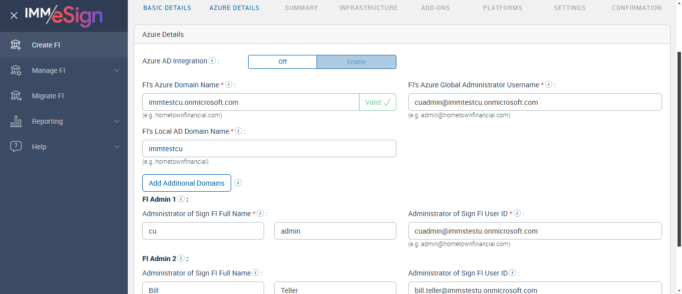 Successfully navigated to the 'SummaryPage' page [ScreenShot] --- 12 Feb 19:12:00 510 - Page URL:: https://esignnonprod.immesign.com/qa/tenantmanager/#/fi/create/azure
