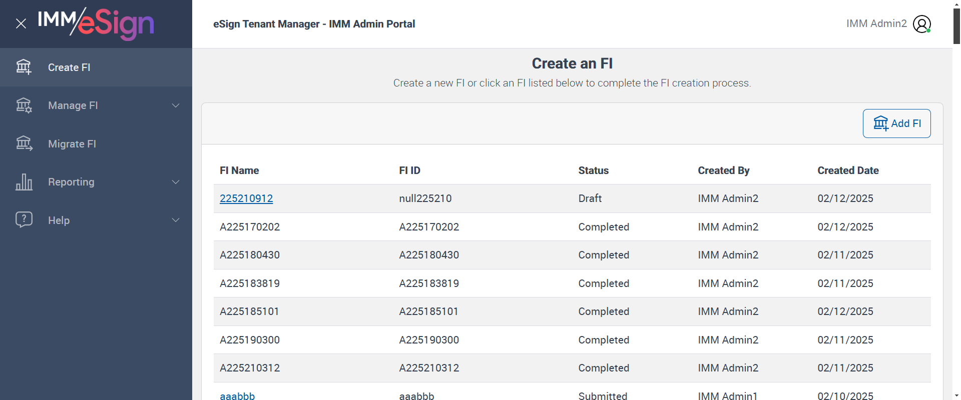 Successfully navigated to 'Manage FI' page [ScreenShot]