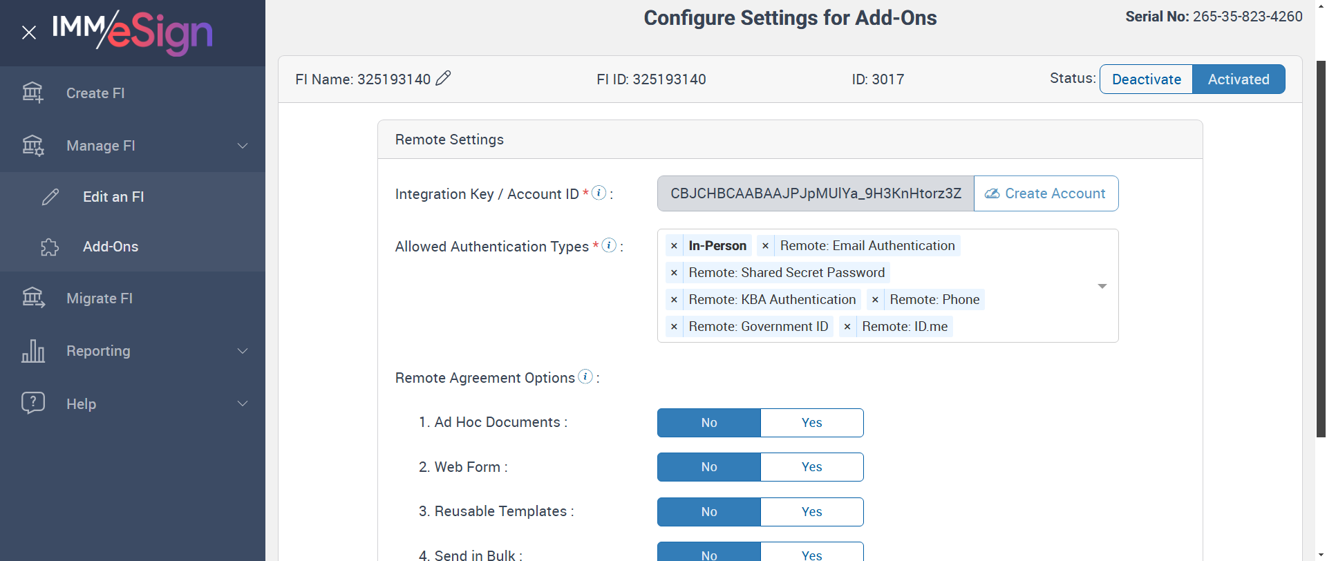 | {ZIP=, Login_User_ID=immadmin1@immesignqa.onmicrosoft.com, RemoteSettings=Ad Hoc Document,Web Form,Reusable Templates, FiStatus=, WebForm=, AdobeKey=, FiAdmin_LastName=Teller,Doe, Name=, LocalDomain=immtestcu, Edit_UserID=joeteller@immtestcu.onmicrosoft.com, Adhoc_Doc=, eSignPlus=, RtmAuthTypes=, Fully_Intgrt_Key=, IntegrationType=Legacy Account, SendInBulk=, RemoteSign=Off, DrpSpot=, RemoteSign_ManageFI=Enable, Reusable_Temp=, AZDomain=immtestcu.onmicrosoft.com, VerifastEDays=, City=, WrongAZDomain=, LCEvalDays=, State=, LoanCoupon=, Login_Password=iMM@2024, Country=, ClientID=3AAABLblqZhCQLd3zpFZKjJbAHz9Iltx9H66PUQv34Itep5CnjFb_Ehcl4GOj6Tx0Y5dNSNcgnfoFtmjwvBuopeEtD4QtE_yU, FIID=, Key=, FiAdmin_FirstName=Bill,Jane, Dictionary=TeSign;XPLN, Sign_RmtAgree_NotChecked=Send In Bulk, StarterEvalDays=, Description=RemoteDisabledVerifyRemoteOptionsineSign, StarterChecks=, eSignURL=https://esignplusqa.immesign.com/TEAASP/Login.aspx, E-Vault=, Filepath=, TestID=RemoteDisabledVerifyRemoteOptionsineSign, FiAdmin_UserID=billteller@immtestcu.onmicrosoft.com,janedoe@immtestcu.onmicrosoft.com, EditFIAdmin_FName=, Verifast=, LacerPro=, Notes=, Session URL=https://esignnonprod.immesign.com/qa/tenantmanager/, GlobalAdmin=cuadmin@immtestcu.onmicrosoft.com, TypeOfUser=, eValultDays=, ErrorMsg=, Address2=, Address3=, Address1=, Sign_Password=iMM@2022, WrongFIID=, DrpEvalDays=, EditFiadmin_LName=, Sign_RmtAgree_checked=Ad Hoc Document,Web Form,Reusable Templates,Manage Remote Agreements} |
