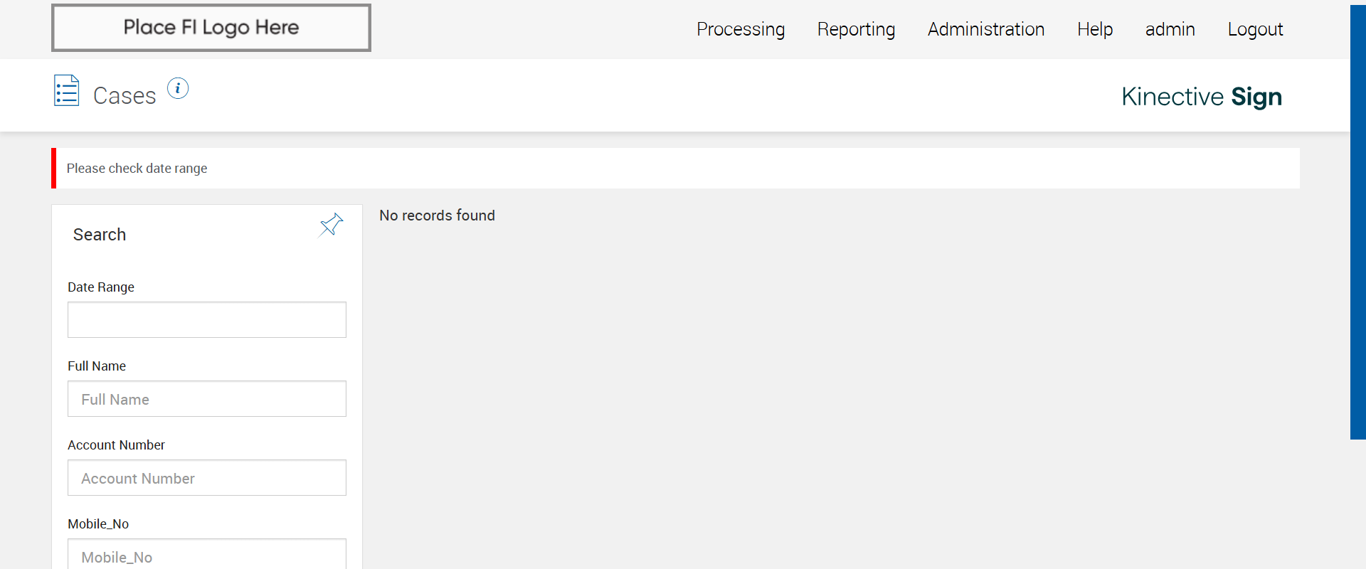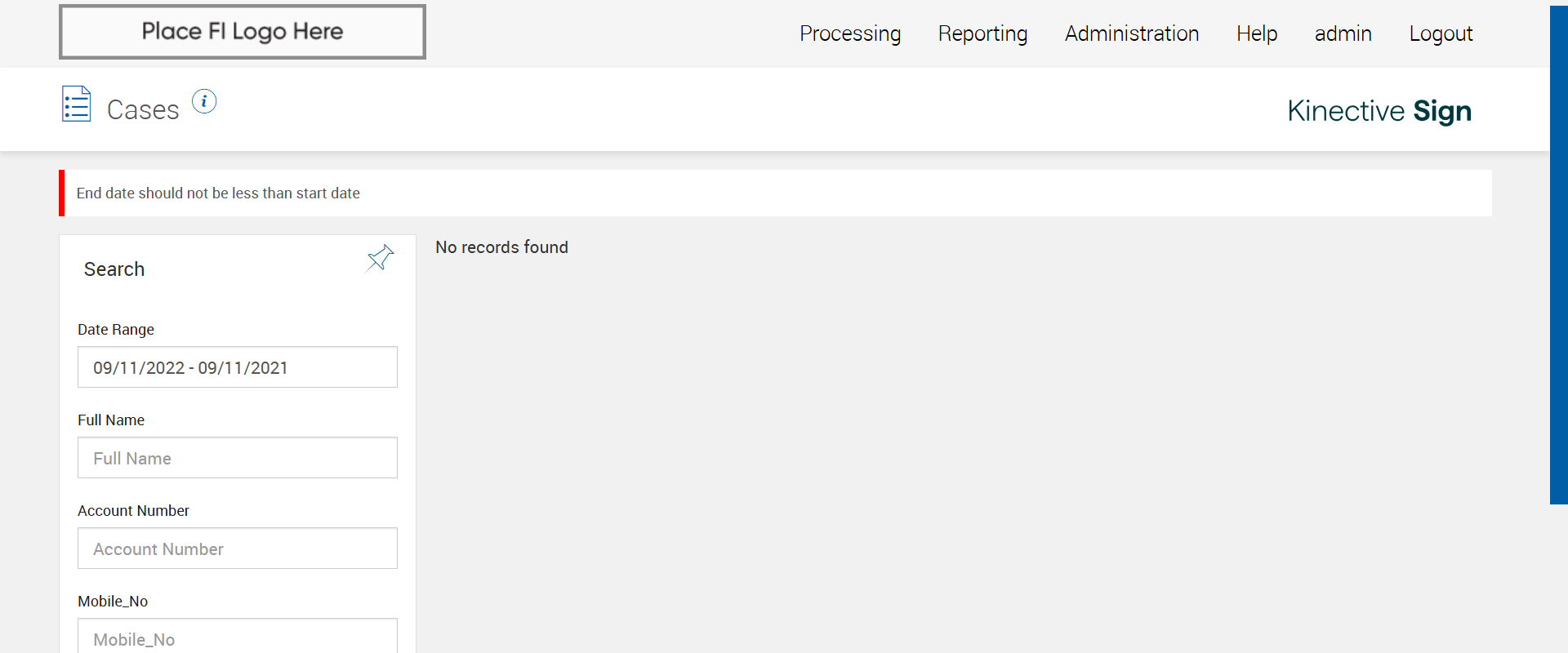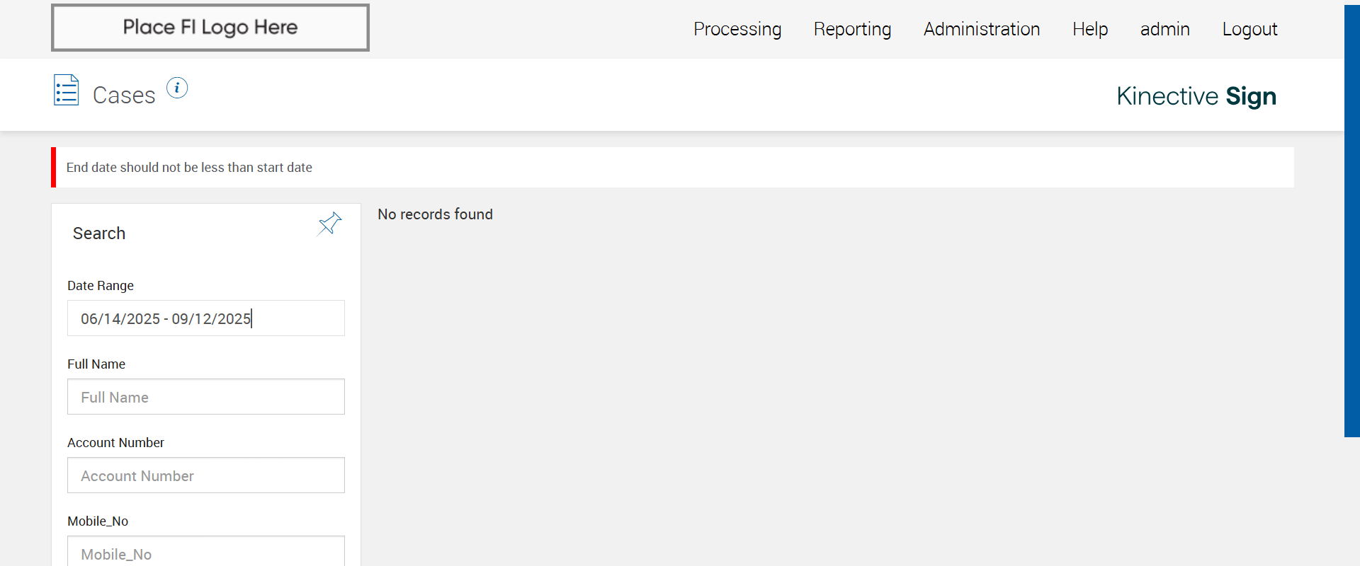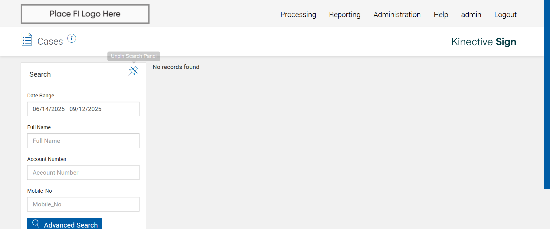 'Date Range', 'Full Name', 'Account Number' text fields & 'Search', 'Advanced', 'Clear' buttons are displayed [ScreenShot]