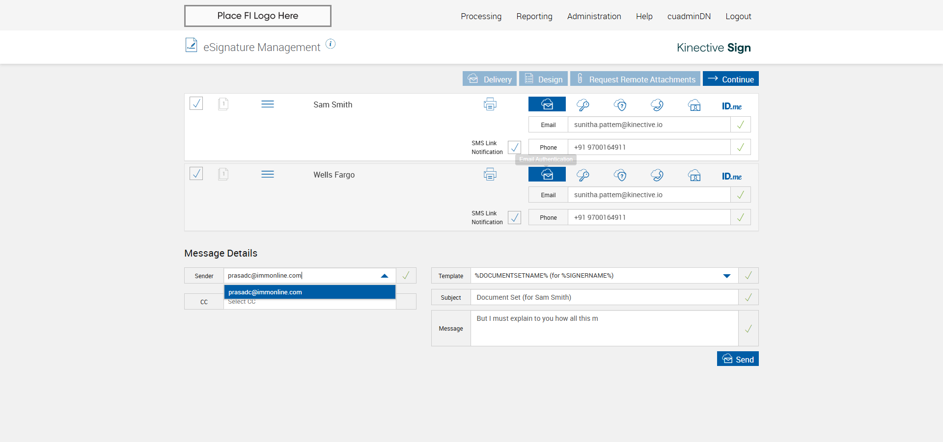 verify eDelivery Sender Email In eSignature Management Page RTS - Plus FI - Legacy COMMENTS:Plus FI - Sender Email