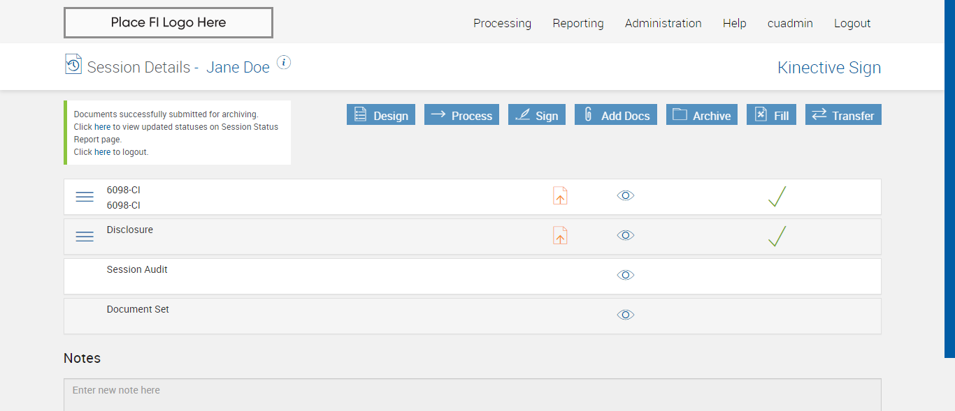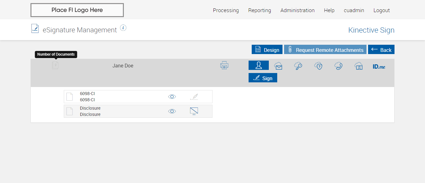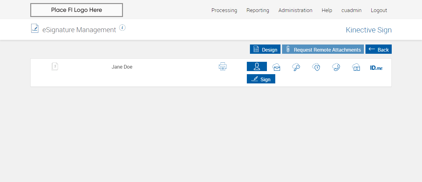 Expected: 'Design', 'Process', 'Sign', 'Add Docs', 'Archive' buttons should be disabled
