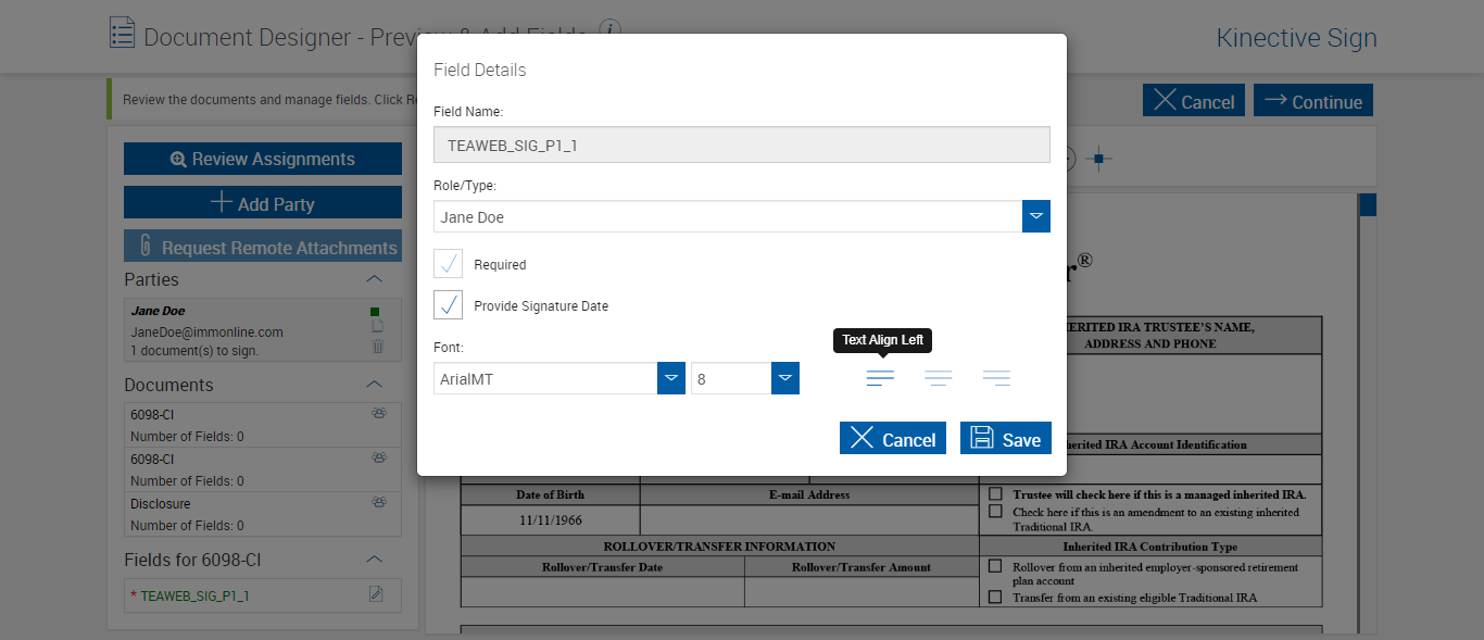 ({Tenant_User=, Tenant_URL=, Group=, EditFullName=, Description=Adding Signature fields in Designer page, Archive=, Email=JaneDoe@immonline.com, Platform=, Message=, FileName=, ShortName=, EditShortName=, PartyName=Jane Doe, Phone_Number=, Filepath=src/main/resources/testdata/files/NewAccount2.zip,src/main/resources/testdata/files/documentRTS/6098-CI.pdf,src/main/resources/testdata/files/documentRTS/Disclosure.pdf, DocumentPermission=, TestID=verifyAddingSignatureFieldsInDesignerPage, FItype=, Required=TRUE, IndexSource=, PartiesToView=, TextField=, Document Names=, Password=, DocumentName=, Path=, Dropdownvalues=, Tenant_Password=, New Column=, UserName=, Email_Id=, Index_Field_Name=Member_Number-123456;Account_Number-457899;Application_Number-11223344;Suffix-test;Dictionary_Code-test2;Document_Set_Name-Testset;Full_Name-John;Member_Name-MBR12, Sender_Email_Id=, FI_ID=, Vendor=, AttachmentTypeOption=, TemplatePermission=, Date=TRUE, Subject=, NumOfAttachments=, Folderpath=, Type=, NameDescription=, AttachmentPath=, Export_Values=, FullName=6098-CI,Disclosure, EditNameDescription=})