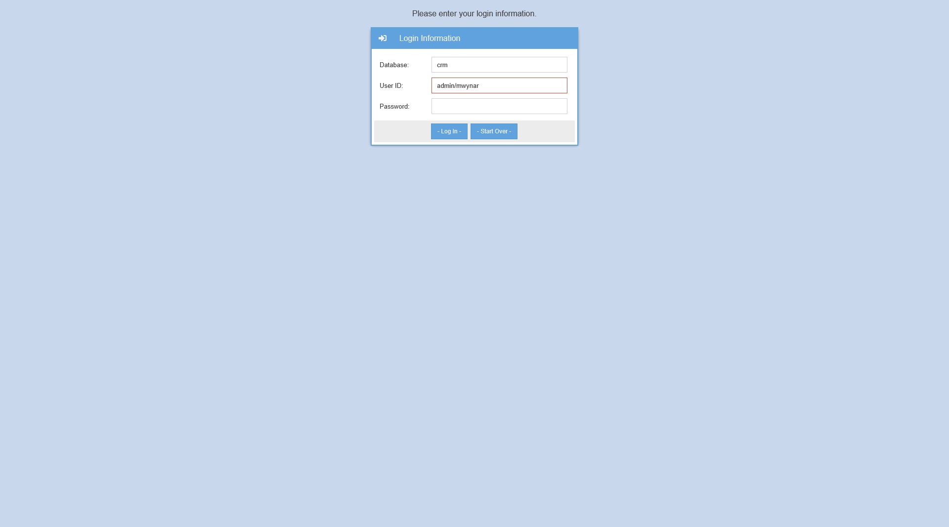 --- 12 Dec 18:47:11 148 - Entered credentials for DataVA login: DB=crm, User=admin/mwynar