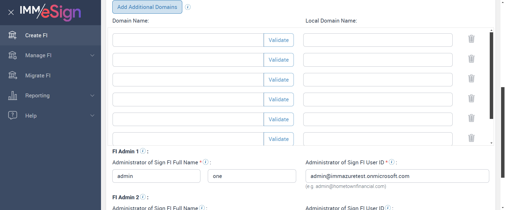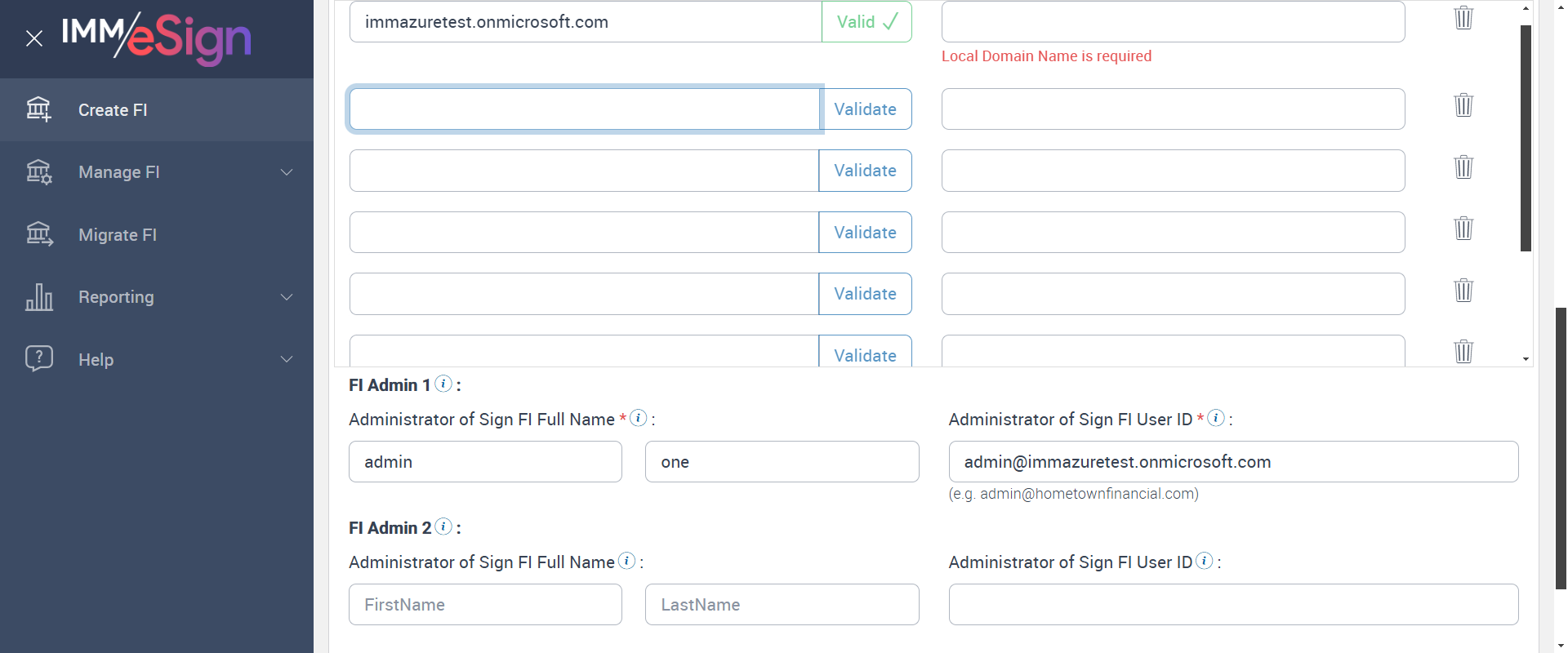 ({Tenant_URL=https://esignnonprod.immesign.com/qa/tenantmanager/, EmailID=, WorkflowSummary=, Login_User_ID=qauser2@immazuretest.onmicrosoft.com;qauser2@bank.immazuretest.com;qauser2@cu.immazuretest.com;, Address=, FiStatus=Completed, FiAdmin_LastName=one;, Add_Dictionary=, GRP_PermissionRadio=, Effect_Summary=, Name=, GRP_PermissionChkBox=, NewUser_ID=KPUser4@immtestcu.onmicrosoft.com;iMM@2025!, LocalDomain=immazuretest, PartiesToView=, NewName=, User_ID=, Wkf_Permission=, Reset_Password=, NewDescription=, AZDomain=immazuretest.onmicrosoft.com, Workflow=, City=, Delete_Dictionary=, AttachmentTypeOption=, NewEmailID=, State=, Login_Password=iMM@2025!;, eSignClient=, ClientID=3AAABLblqZhD30DKWBPu7imEU8SeeWxOu52TQydcjmeTa5VeOcDVkw9gxFFvP8ypLwkNjNPwurxhfsiDhYzrWTX6zRG79GNWx, Domain=azuretest;azurebank;azurecu;, UserType=, NewGroup=, Tenant_User=, FiAdmin_FirstName=admin;, Group=Users;Accounting Group;, Dictionary=TeSign;XPLN;MSP, FI_Name=Autotestfi, Description=Create new FI, While create FI verify Azure details tab UI for multi domain and add multiple Additional domain. After that verify user can login with different additional domains and check user will add in correct group also check correct domain name display., AdditionalDomainName=immazuretest.onmicrosoft.com;bank.immazuretest.com;cu.immazuretest.com;, SearchUser=, Filepath=src/main/resources/testdata/files/documentRTS/BasicRTSDocs/005BA1.pdf;src/main/resources/testdata/files/documentRTS/BasicRTSDocs/513BA.pdf, TestID=verifyMultiDomainTMCreateFIAzureDetailsandEsignUsersLogin, FiAdmin_UserID=admin@immazuretest.onmicrosoft.com;, Dictionary_Code=, IndexSource=, Access_Password=, UserURL2=, Inbox_Permission=, Confirm_Reset_Password=, AdditionalLocalDomainName=azuretest;azurebank;azurecu;, Notes=, Inbox=, GlobalAdmin=admin@immazuretest.onmicrosoft.com, Path=src/main/resources/testdata/files/documentRTS/BasicRTSDocs/BasicRTSDocTemplates.zip;, Copy_User_ID=, Tenant_Password=, Enter_eSignClient=, ZipCode=, FI_ID=Autotestfi, Confirm_Password=, CasesUser=, Tab=, UserURL=, Copy_Tab=})