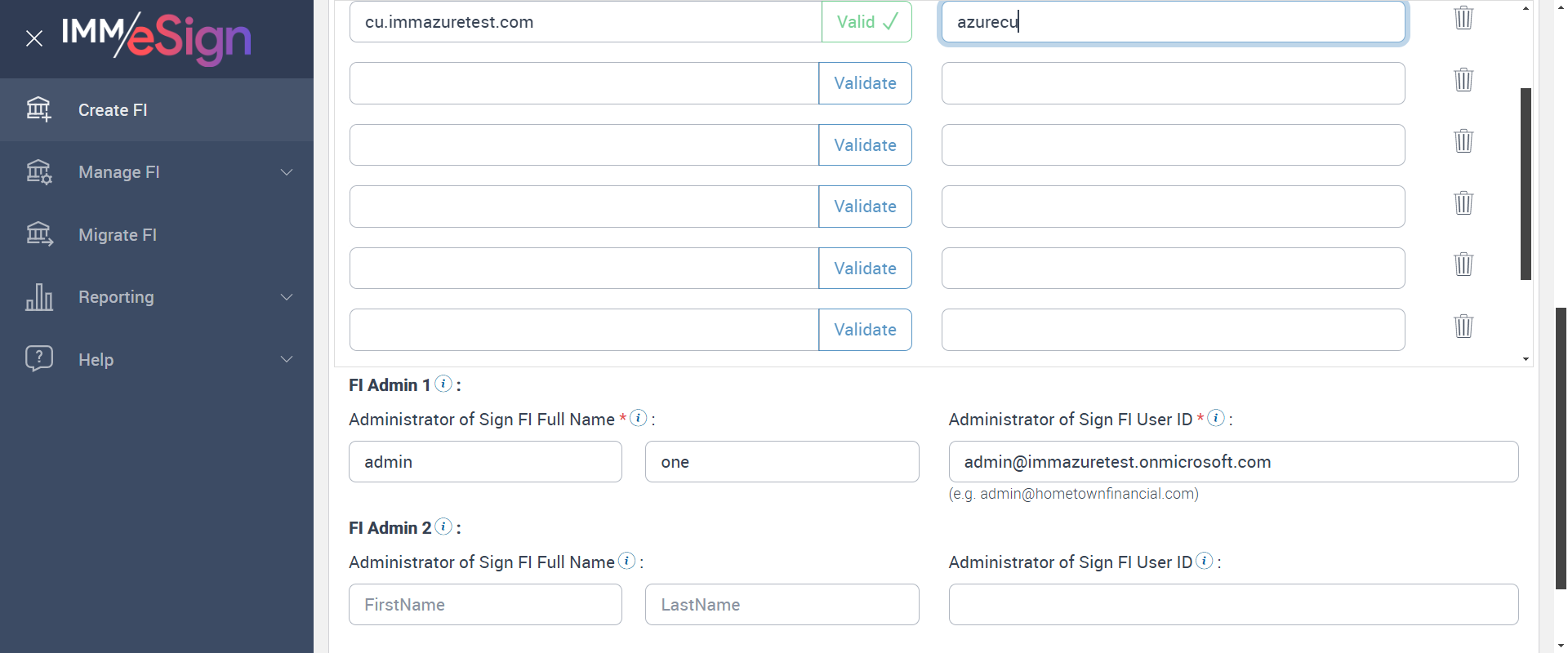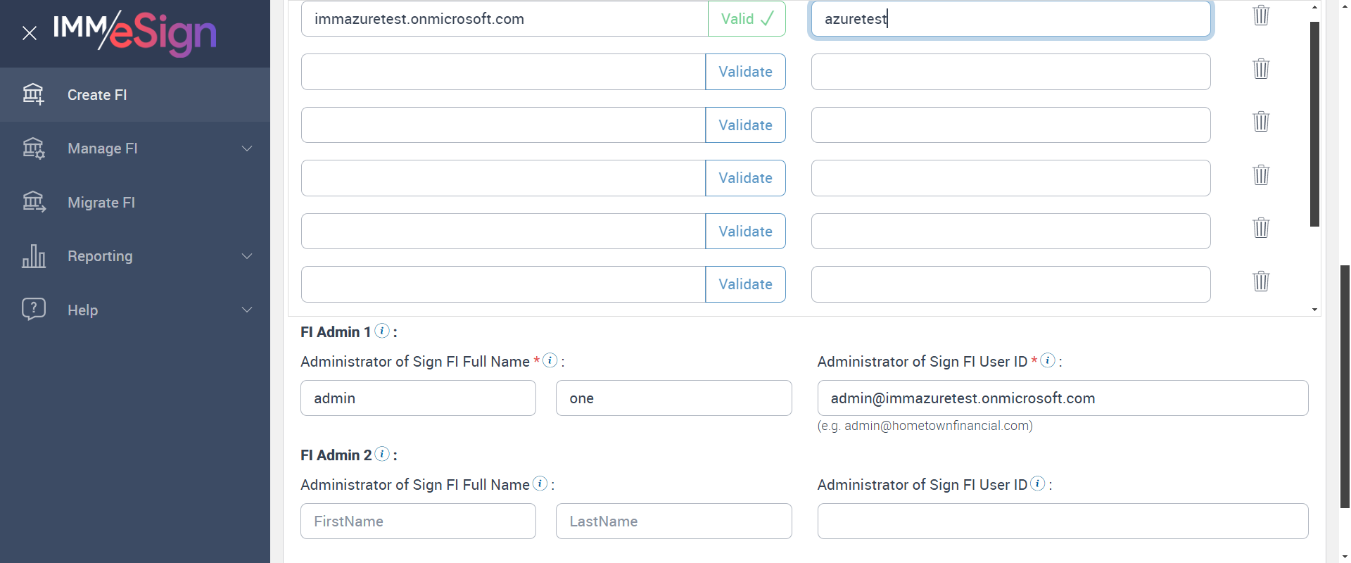 verifyMultiDomainTMCreateFIAzureDetailsandEsignUsersLogin