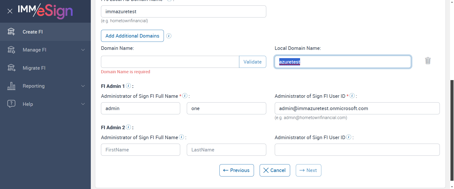 verifyMultiDomainTMCreateFIAzureDetailsandEsignUsersLogin