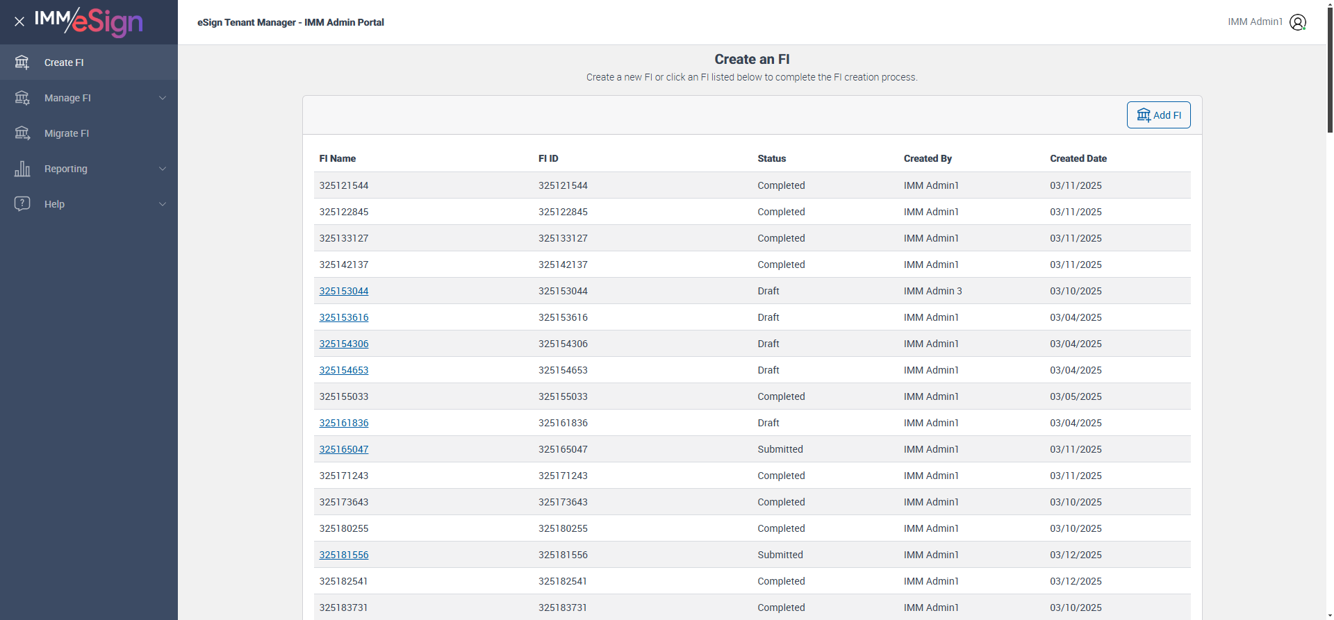 | Manage FI Remove existing Fiadmin and AddNew FiAdmin1 FiAdmin2 |