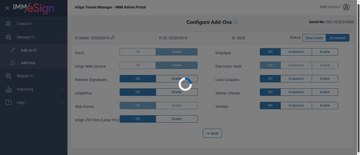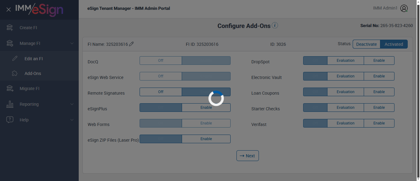 --- 13 Mar 21:27:22 739 - Page URL:: https://esignnonprod.immesign.com/qa/tenantmanager/#/fi/manage/addons