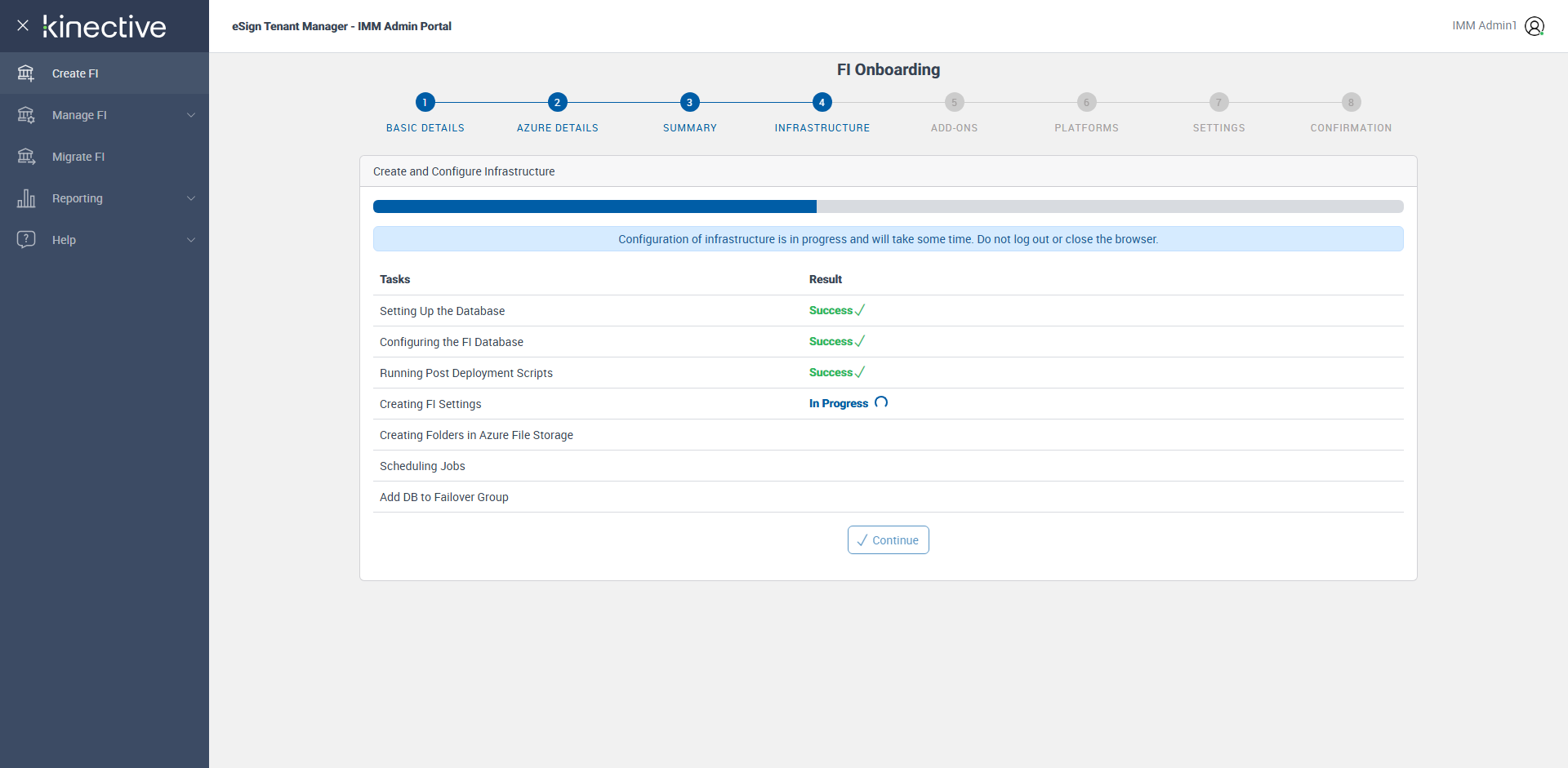 Successfully Configured 'Creating FI Settings'