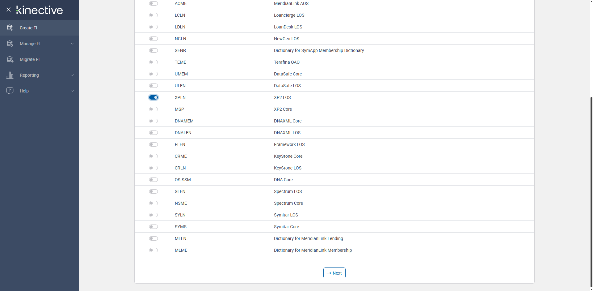 Successfully navigated to 'Create an FI' page [ScreenShot]