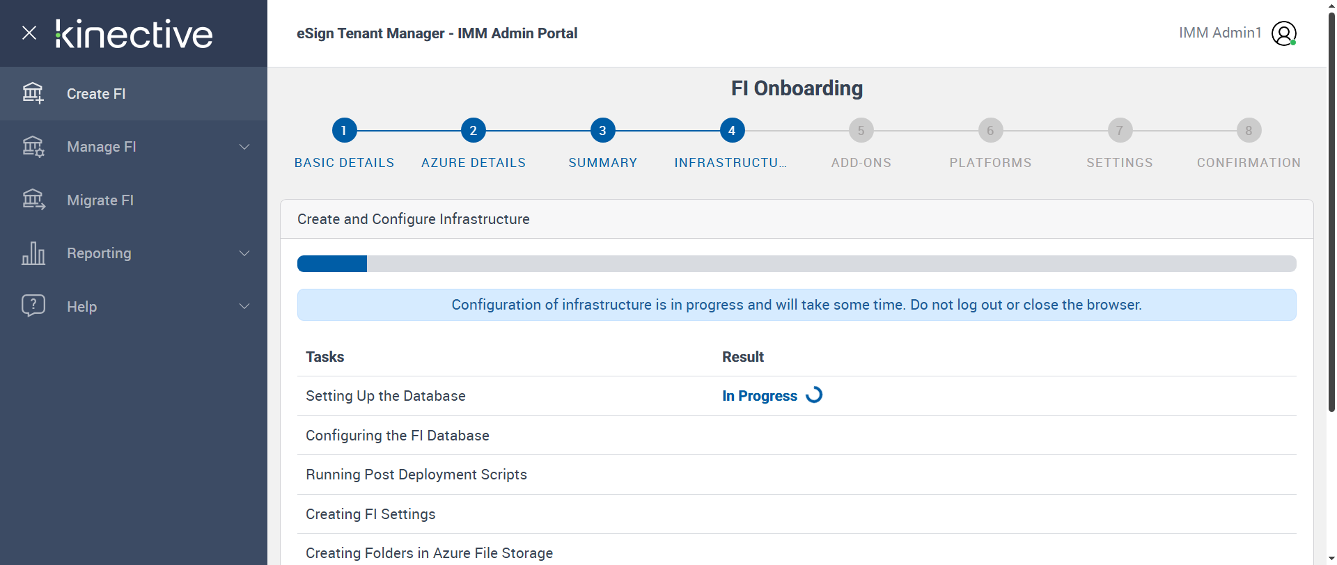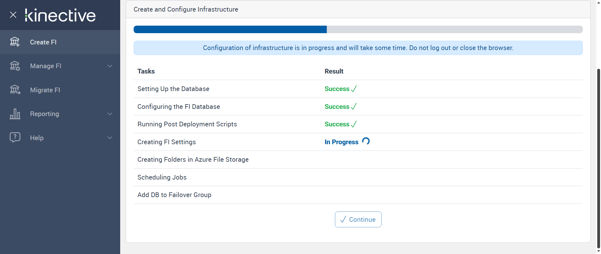 Successfully Configured 'Creating FI Settings'