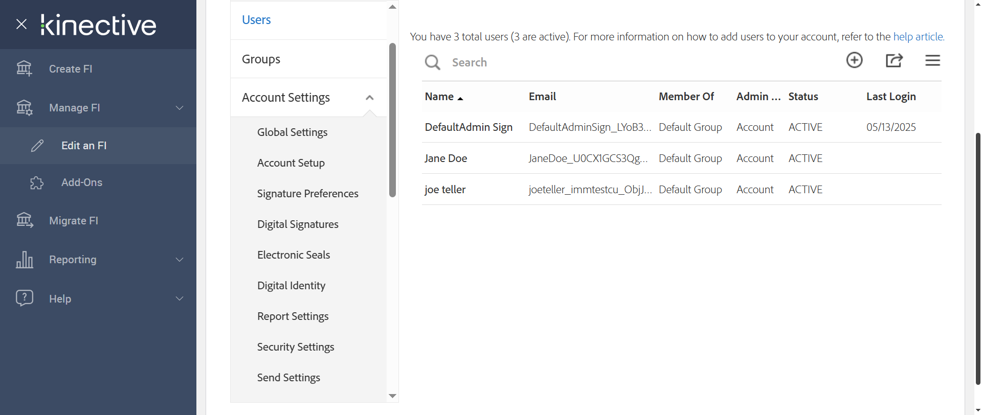 Successfully verified Status 'ACTIVE' in the Advanced Settings (Adobe) page for: Jane Doe [ScreenShot]