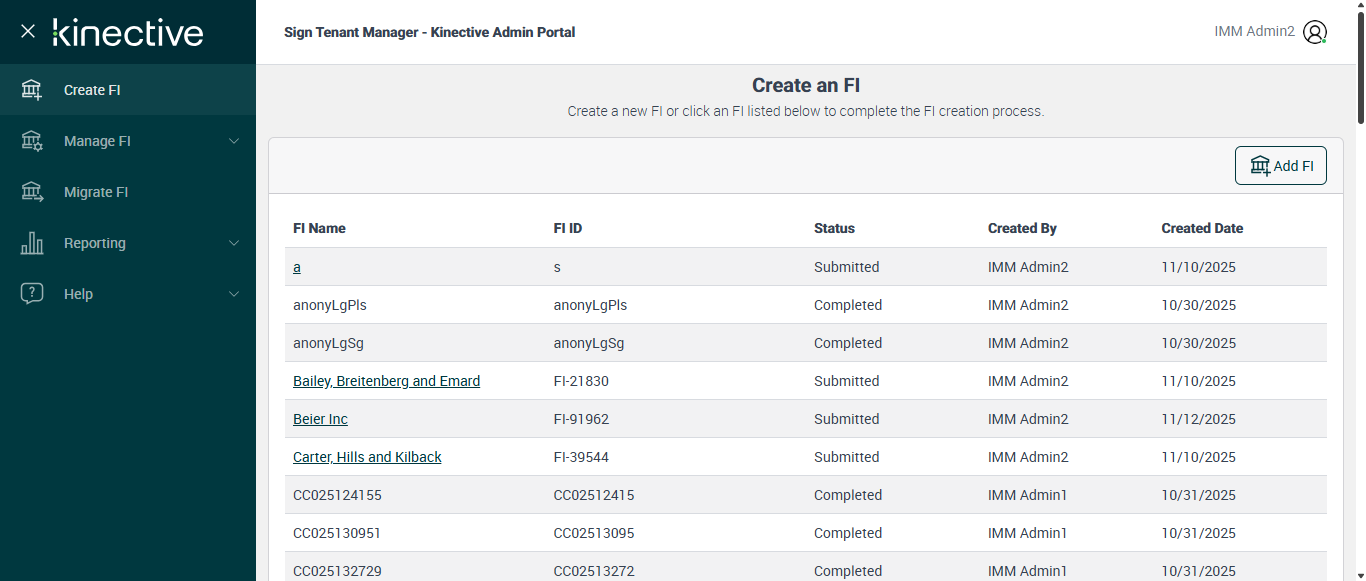 Successfully navigated to 'Manage FI' page [ScreenShot]