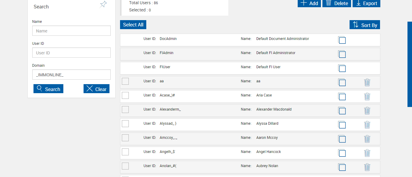 Expected: DocAdmin user present in User maintenace page
