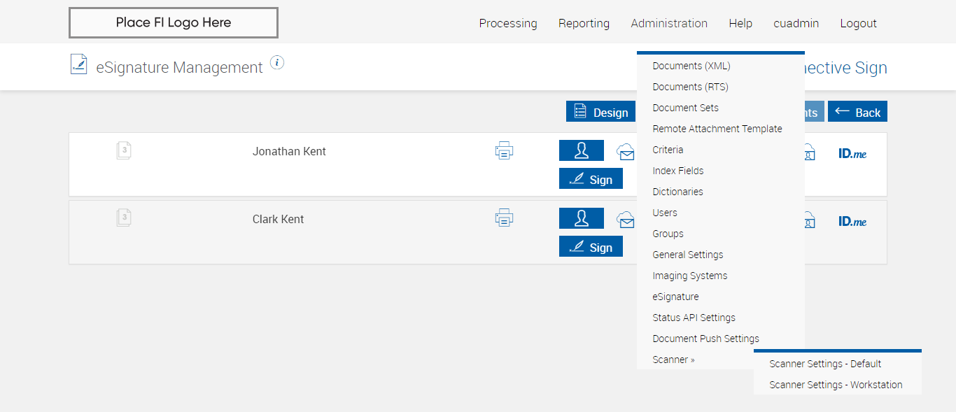 Successfully navigated to the 'ESignature management' page [ScreenShot]