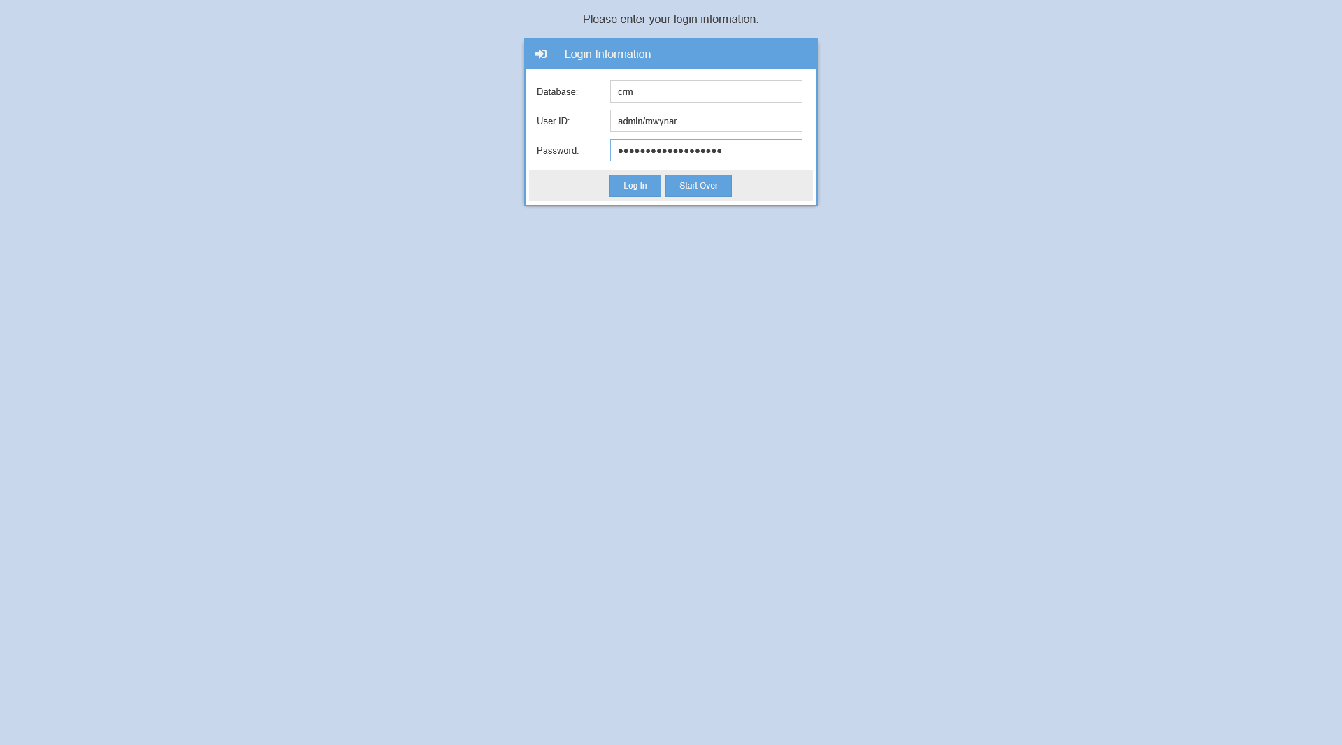 --- 13 Dec 18:45:51 286 - Entered credentials for DataVA login: DB=crm, User=admin/mwynar