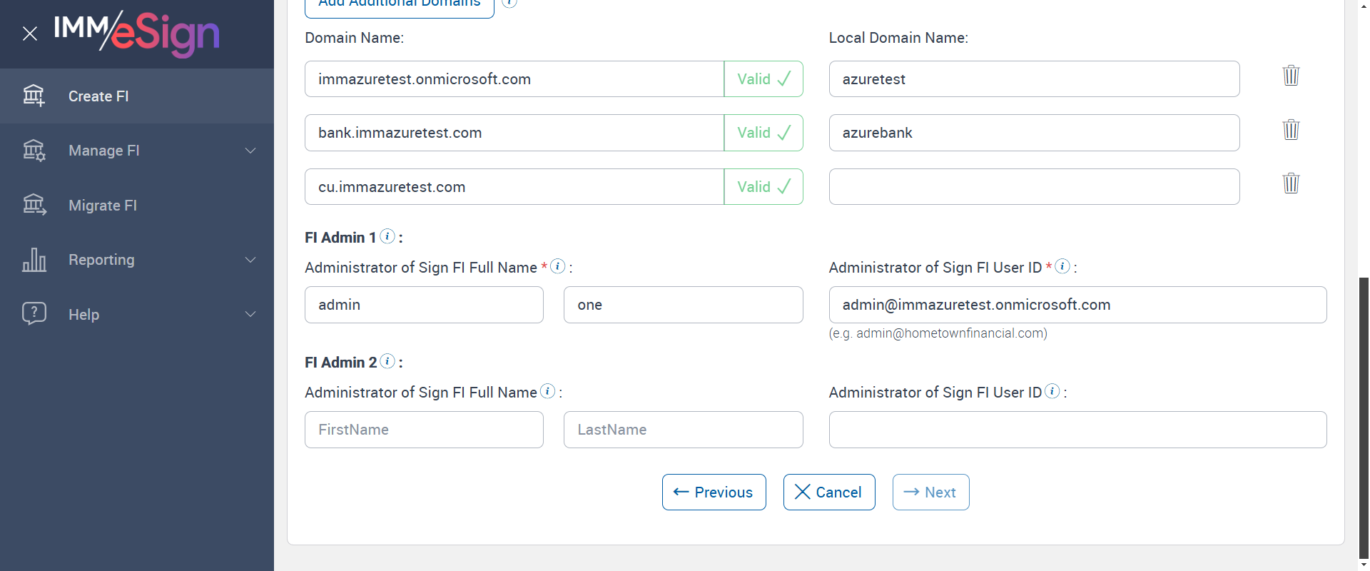 verifyMultiDomainTMCreateFIAzureDetailsandEsignUsersLogin