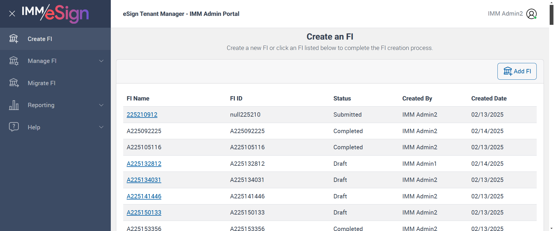 Successfully navigated to 'Manage FI' page [ScreenShot]