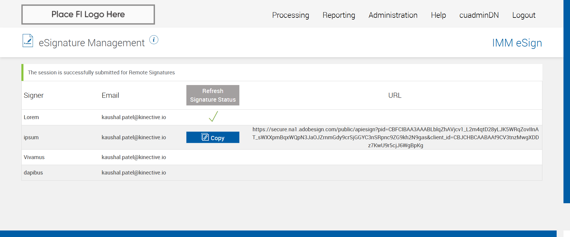 Actual(Passed): Verified 'Copy' button displayed in eSignature Management page for the party - 3[ScreenShot]
