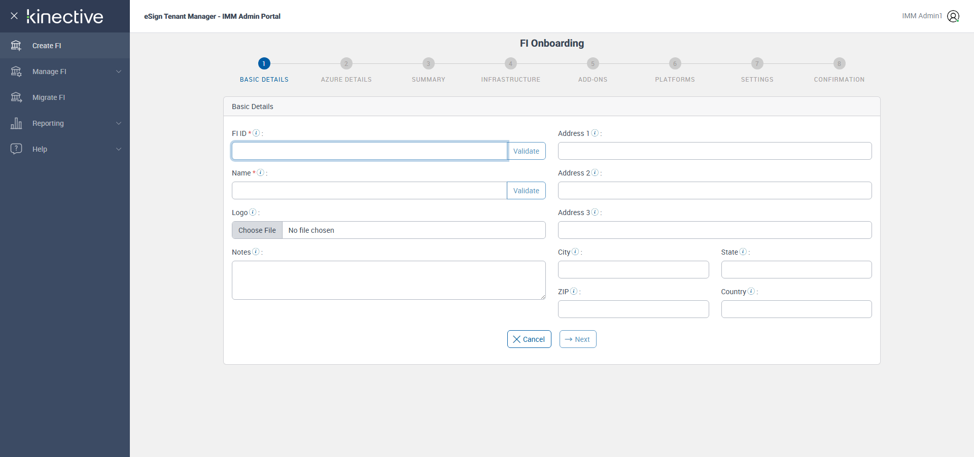 Successfully navigated to 'Create an FI' page [ScreenShot]