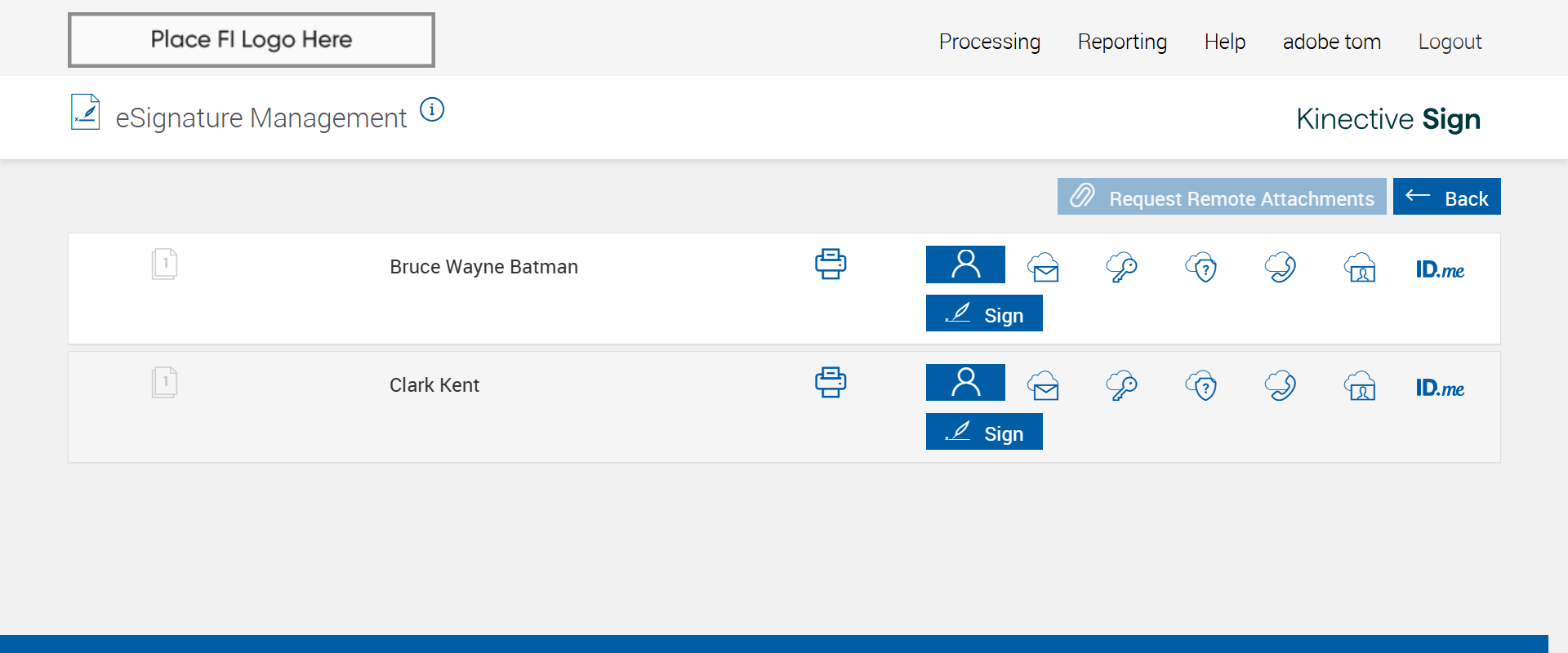 Successfully navigated to the 'eSignature Management' page [ScreenShot]