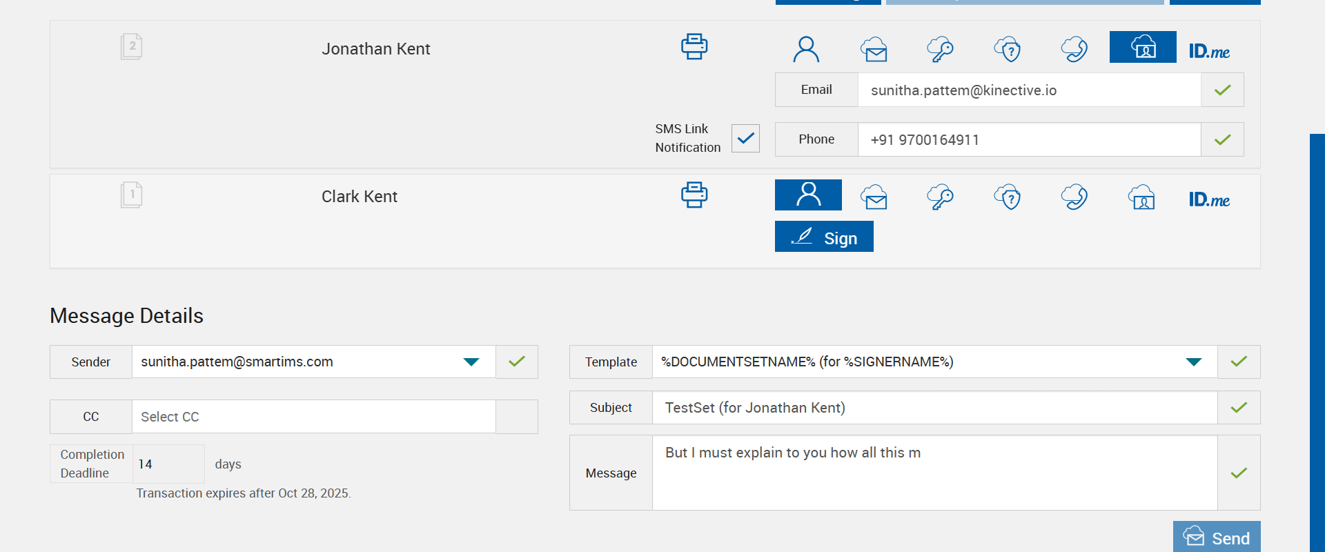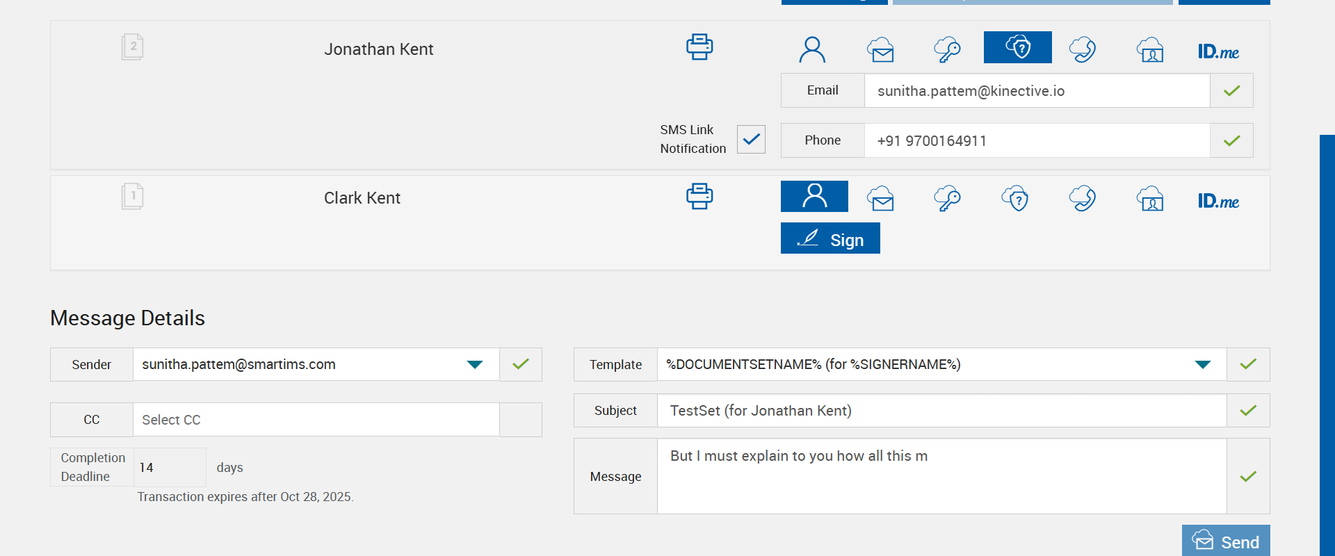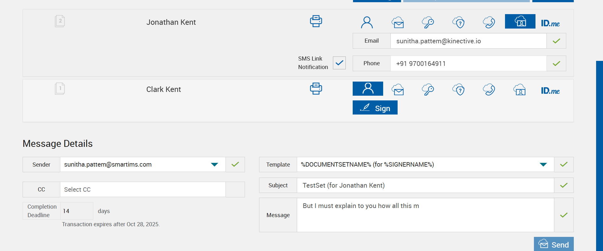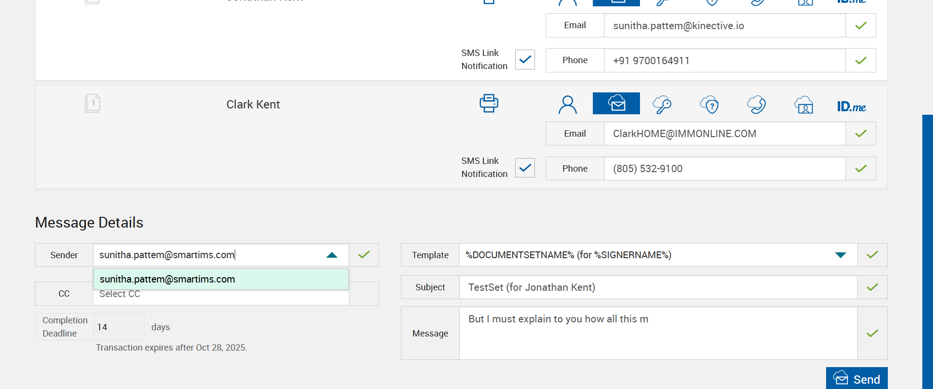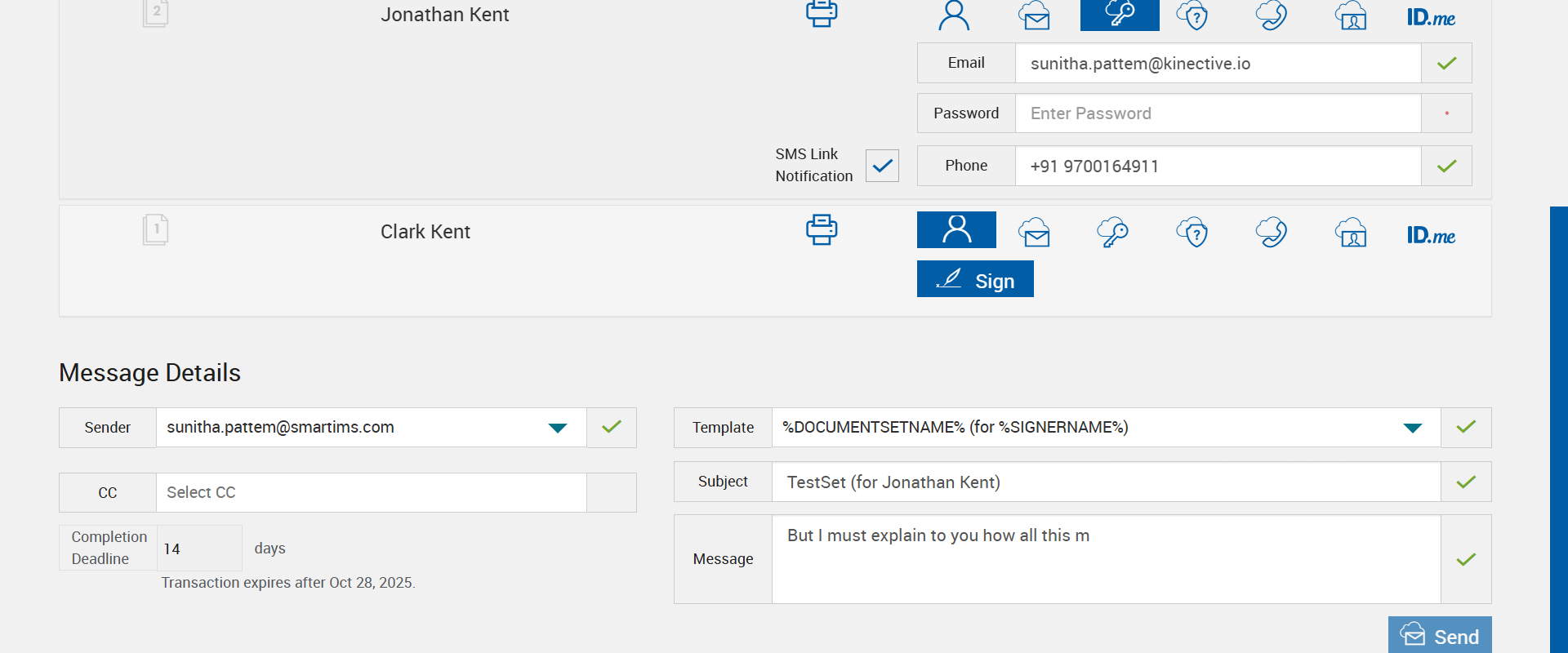 | {Tenant_URL=https://esignnonprod.immesign.com/qa/tenantmanager/, InboxName=, Platform=, Address=, Username2=, IsSignRequired=, tooltip=, User_Password=, Name=, PartiesToView=Clark Kent,Jonathan Kent, GROSSPPP=, IsAddedTemplateRequired=, Zipcode=, ReceivedFromNames=, EditCompletionDays=, TemplateTitle=, plusfi=, DummyUser=, EditMessageSubject=, IntegrationType=, DocumentName=, AttachmentTemplate=, FirstTransfer=, Dropdownvalues=, Remote_Signing_Type=, KeepUnlock=, Workflow=, Birthdate=, AttachmentTypeOption=Signature_Card, SecondTransferUserID=, NumOfAttachments=, CompletionOrder=, ReceivedFrom=, Driving_license=, DocumentSet=, Test_type=, UserType=, Tenant_User=immadmin1@immesignqa.onmicrosoft.com, Applytype=, Group=, Description=verify Adobe SMS Signing Method UIElements In Esignature Management Page, fi=, User=, MessageSubject=, Message=Your documents are available for viewing, signing and printing., NoOftemplates=, FirstTransferUserID=, Phone_Number=+91 9700164911, SearchUser=, Step Name=, Filepath=src/main/resources/testdata/files/fingerprint01.pdf, Owners=, TestID=verifyAdobeSMSSigningMethodUIElementsInEsignatureManagementPage, FItype=, IndexSource=Clark Kent, WorkfowName=, Sessionurl=https://esignplusqa.immesign.com/TEAASP/HostDispatch.aspx?hostid=XP&hsfiid=autoesign&xmlData=D:\Automation_DataFiles\PrimarySpouse5.xml, Inbox=, Password=, CC=immuser@immonline.com, View/Skip_Group=, Tenant_Password=iMM@2025, User_Name=, UserName=, ViaAddDocs=, CompletionDays=, AddTemplateName=, Email_Id=sunitha.pattem@kinective.io, Comments=, IsOptionalSig=, FI_ID=AutoTestFI, Sender_Email_Id=employee1@immonline.com, UserName2=, From=, UserName3=, SecondTransfer=, Email_Password=Password1, UserName1=, Subject=SMS-Phone, SSN=, Response=, EditTemplateTitle=, MariageStatus=, DummyUserID=, ErrorMessage=} |