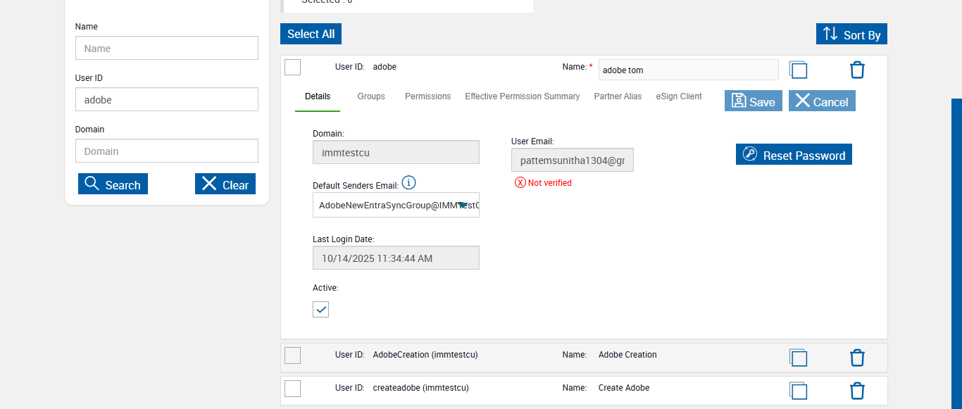 ({Tenant_URL=https://esignnonprod.immesign.com/qa/tenantmanager/#, EmailID=pattemsunitha1304@gmail.com,,sunithapattem@immonline.com, WorkflowSummary=, Login_User_ID=janedoe@immtestcu.onmicrosoft.com,adobe@immtestcu.onmicrosoft.com,SPNoEmail@IMMTestCU.onmicrosoft.com, Address=, FiStatus=, entraGroupEmail=AdobeOEMGroup@IMMTestCU.onmicrosoft.com,AdobeOEMTest@IMMTestCU.onmicrosoft.com, FiAdmin_LastName=tom,, Add_Dictionary=, GRP_PermissionRadio=, Effect_Summary=, Name=, GRP_PermissionChkBox=, NewUser_ID=, LocalDomain=, PartiesToView=, NewName=, plusfi=false, User_ID=, Wkf_Permission=, Reset_Password=, NewDescription=, AZDomain=, Workflow=, City=, Delete_Dictionary=, AttachmentTypeOption=, NewEmailID=, State=, Login_Password=iMM@2022, eSignClient=, ClientID=, Domain=immtestcu, UserType=Admin,User, anonymusFI=false, NewGroup=, Tenant_User=immadmin2@immesignqa.onmicrosoft.com, FiAdmin_FirstName=adobe,spnoemail, Group=AdobeOEMTest,AdobeOEMGroup,AccountCreation, Dictionary=, FI_Name=, Description=verify Email Verification Status In User Maintenance Page - Fully Integrated , AdditionalDomainName=, SearchUser=, Filepath=, TestID=verifyEmailVerificationStatusInUserMaintenancePage, entraGroup=true, FiAdmin_UserID=, Dictionary_Code=, FItype=Unified, integrationType=Fully Integrated, IndexSource=, Access_Password=P@ssword1, UserURL2=, Inbox_Permission=, Confirm_Reset_Password=, AdditionalLocalDomainName=, Notes=, Inbox=, GlobalAdmin=, Path=, Copy_User_ID=, Tenant_Password=iMM@2023, Enter_eSignClient=, ZipCode=, FI_ID=adobeuser, Confirm_Password=P@ssword1, CasesUser=, Tab=, UserURL=, Copy_Tab=, ADUserEmail=})