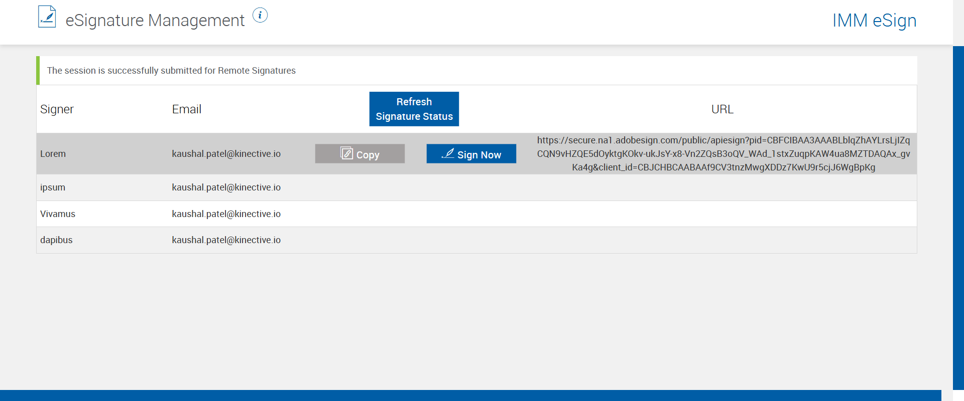 Actual(Passed): Verified 'Copy' button displayed in eSignature Management page for the party - 3[ScreenShot]