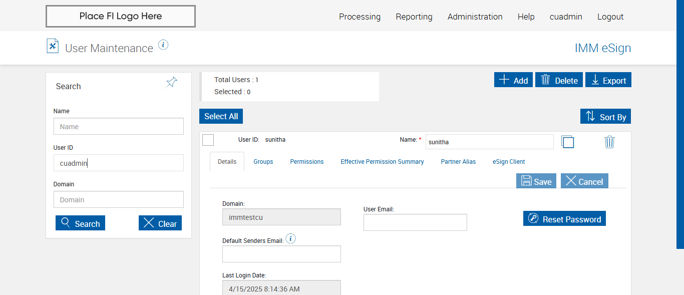 --- 15 Apr 13:06:13 565 - Page URL:: https://esignplusqa.immesign.com/teaasp/usermaintenance